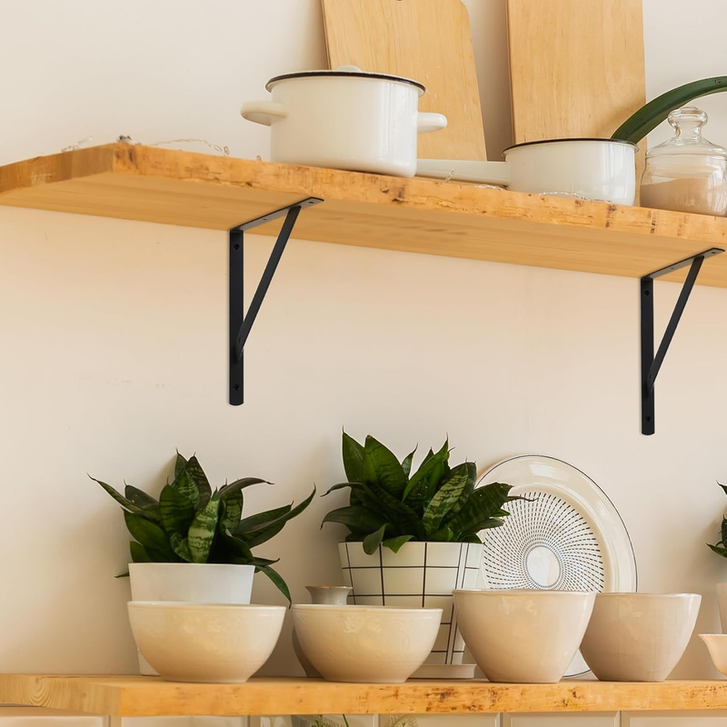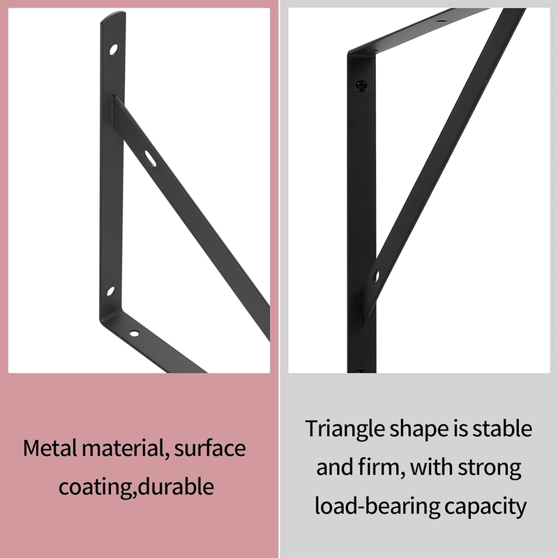 Upgrade your home organization with these durable and stylish floating shelf brackets. Crafted from premium iron with a powder-coated finish, these L-shaped brackets provide strong, stable support for shelving in any room, while the triangular design delivers both strength and elegance.