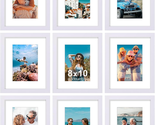 8X10 Picture Frames Set of 9, Shatter Resistant Plexiglass, Display 5X7 Pictures with Mat or 8X10 without Mat, Photo Frames for Wall or Tabletop, Engineered Wood, White