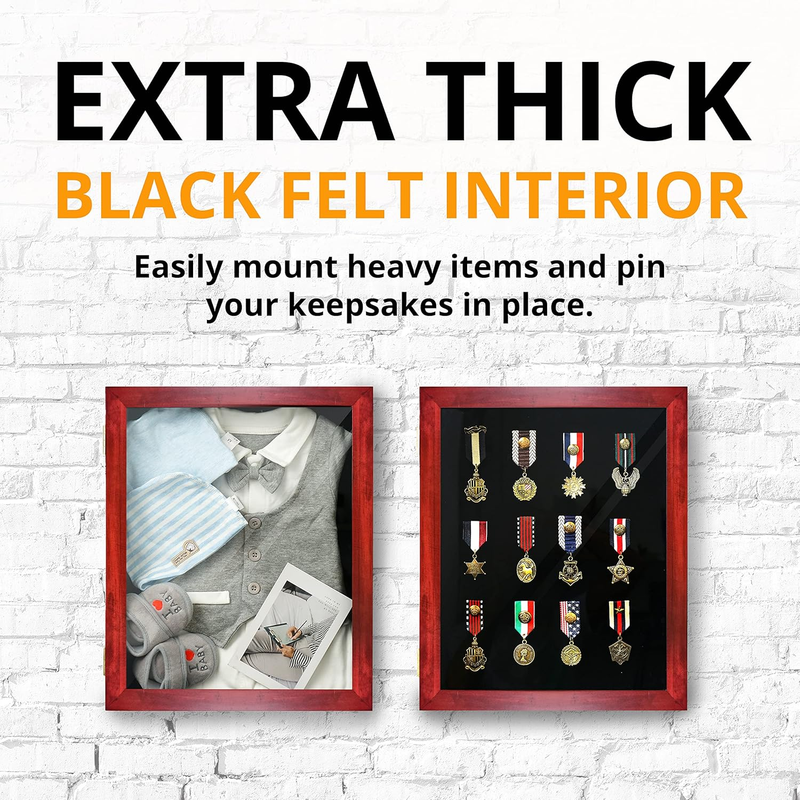 The thick black flocked velvet material is perfect for highlighting the mementos that mean the most to you or the recipient. What?s more, a Forever Frames shadow box is a chance to commemorate the accomplishments, achievements, or sacrifices someone has made in their lifetime.