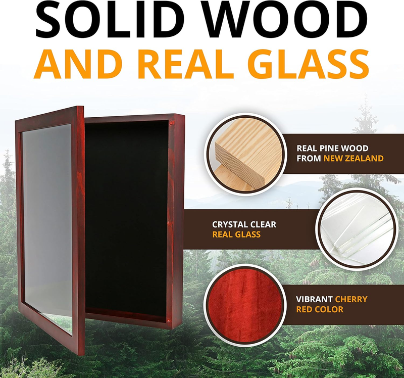 Our all-natural pinewood shadow boxes are stylish, durable, and fitted with ultra-clear glass to provide long-lasting durability. More importantly, they?re taller, wider, and deeper than standard boxes to better support awards, ribbons, medals, and flags.