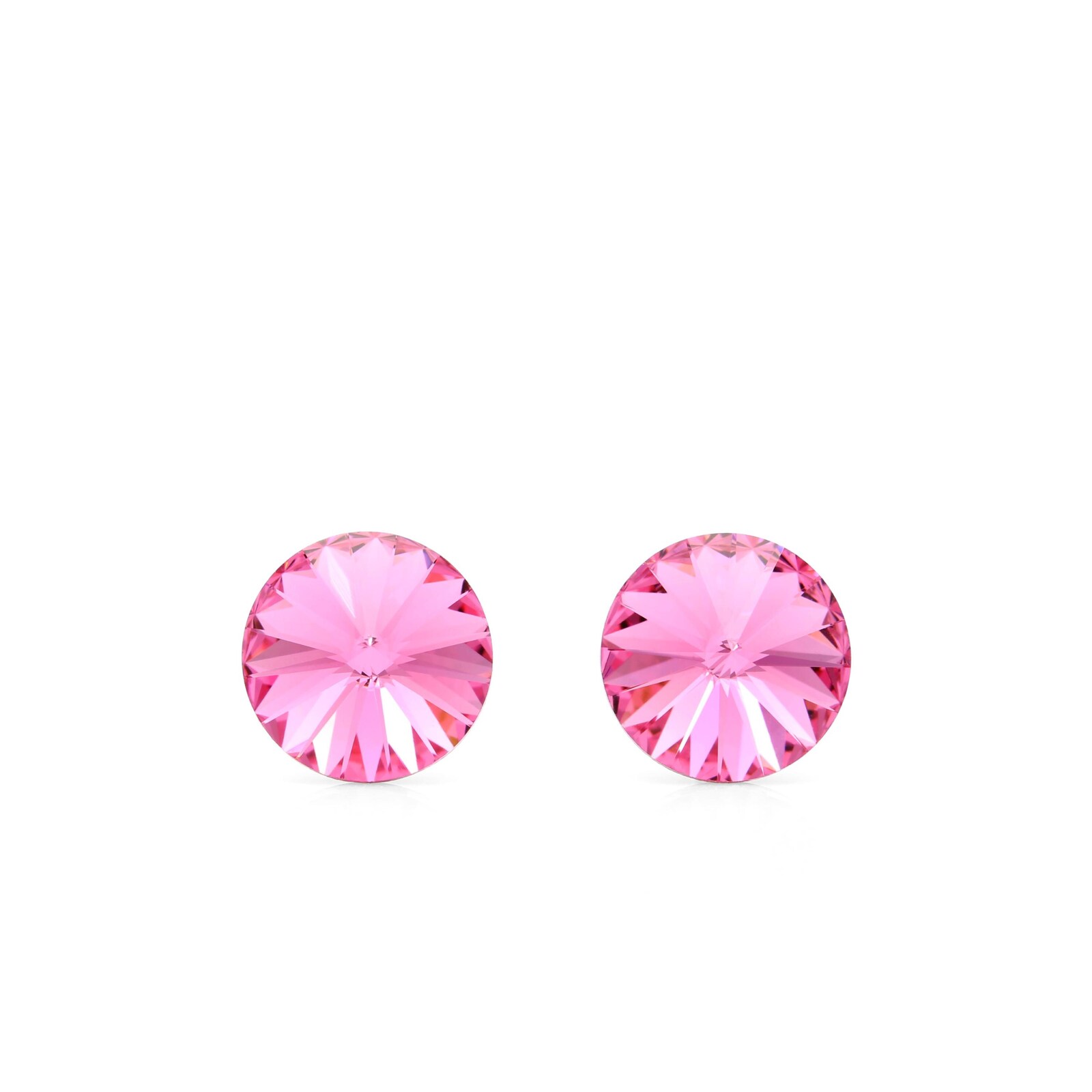 The bright pink Swarovski Rivoli crystals are 8mm in size and have a high brilliance, making them perfect for adding some sparkle to your look.