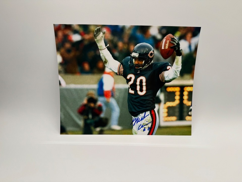The product is an 8x10 original photo of Chicago Bears football player Mark Carrier, autographed by the player himself. This collectible item is a must-have for fans of the Chicago Bears and football enthusiasts in general. The photo captures a piece of sports history and showcases Carrier's connection to the team, making it a unique and valuable addition to any sports memorabilia collection.