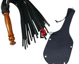 - 9" Cowhide Leather Paddle Slapper & Leather Flogger 25 Tails Wooden Handle Black
