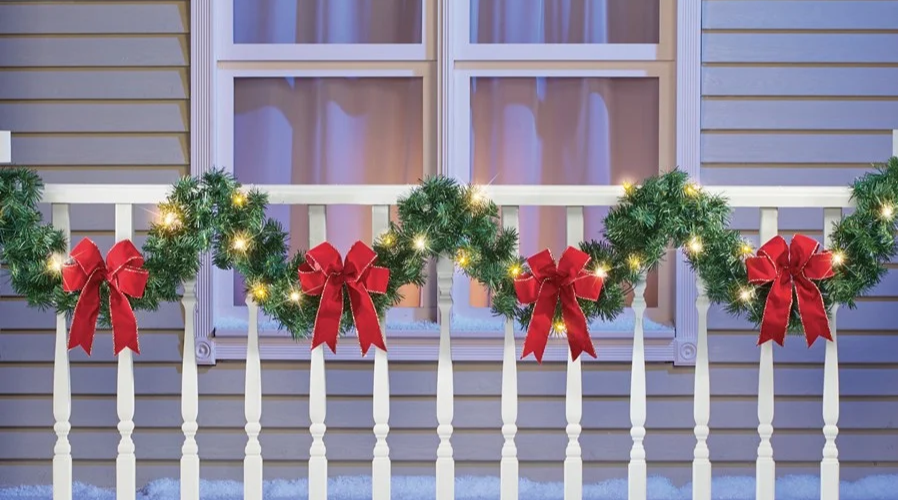 9-Ft LED Lighted Christmas Garland with Red Bows Indoor Outdoor Holiday Decor
