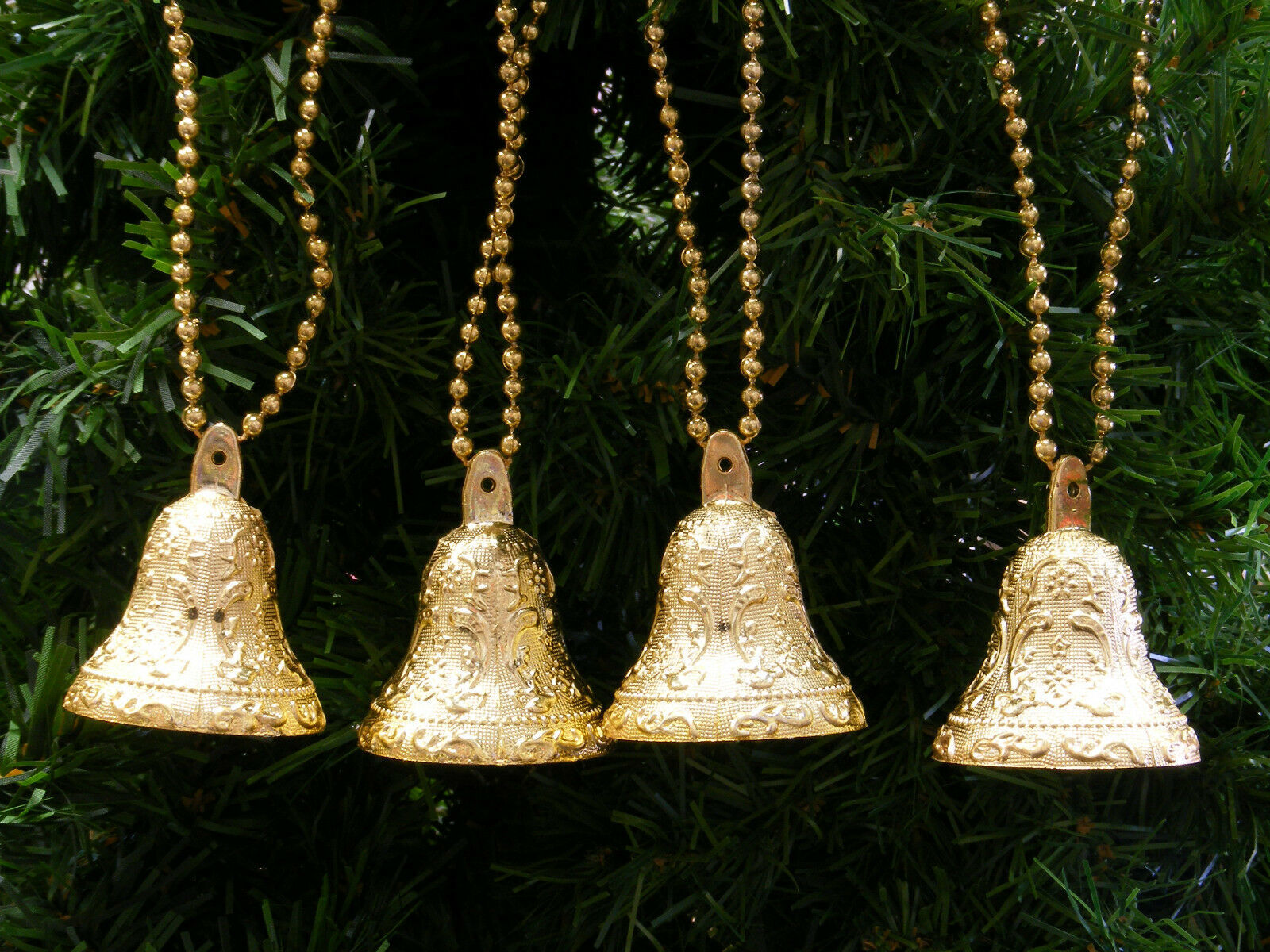 - 9 FT LONG METALLIC GOLD BEADED GARLAND WITH BELLS HOLIDAY CHRISTMAS DECORATION
