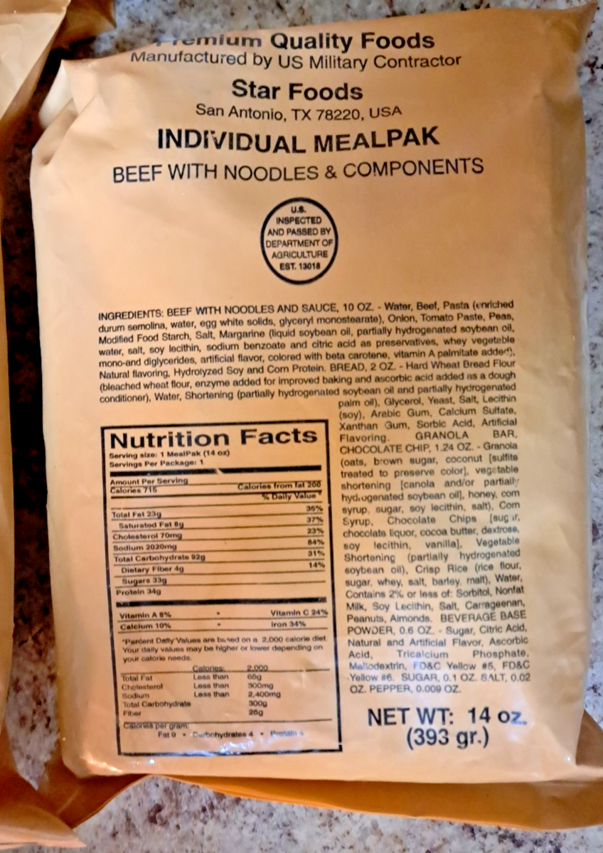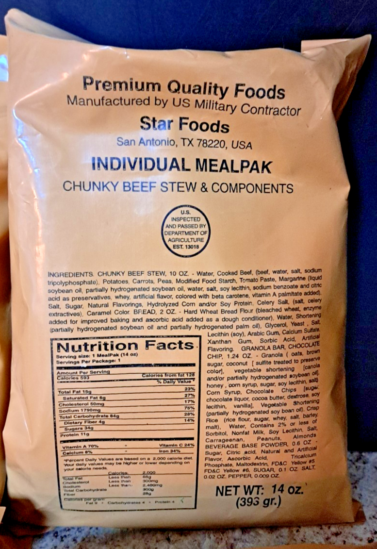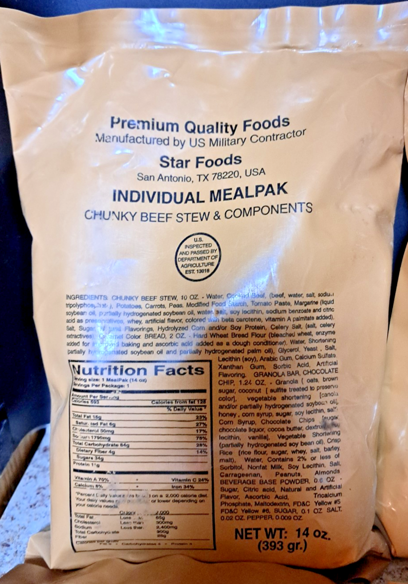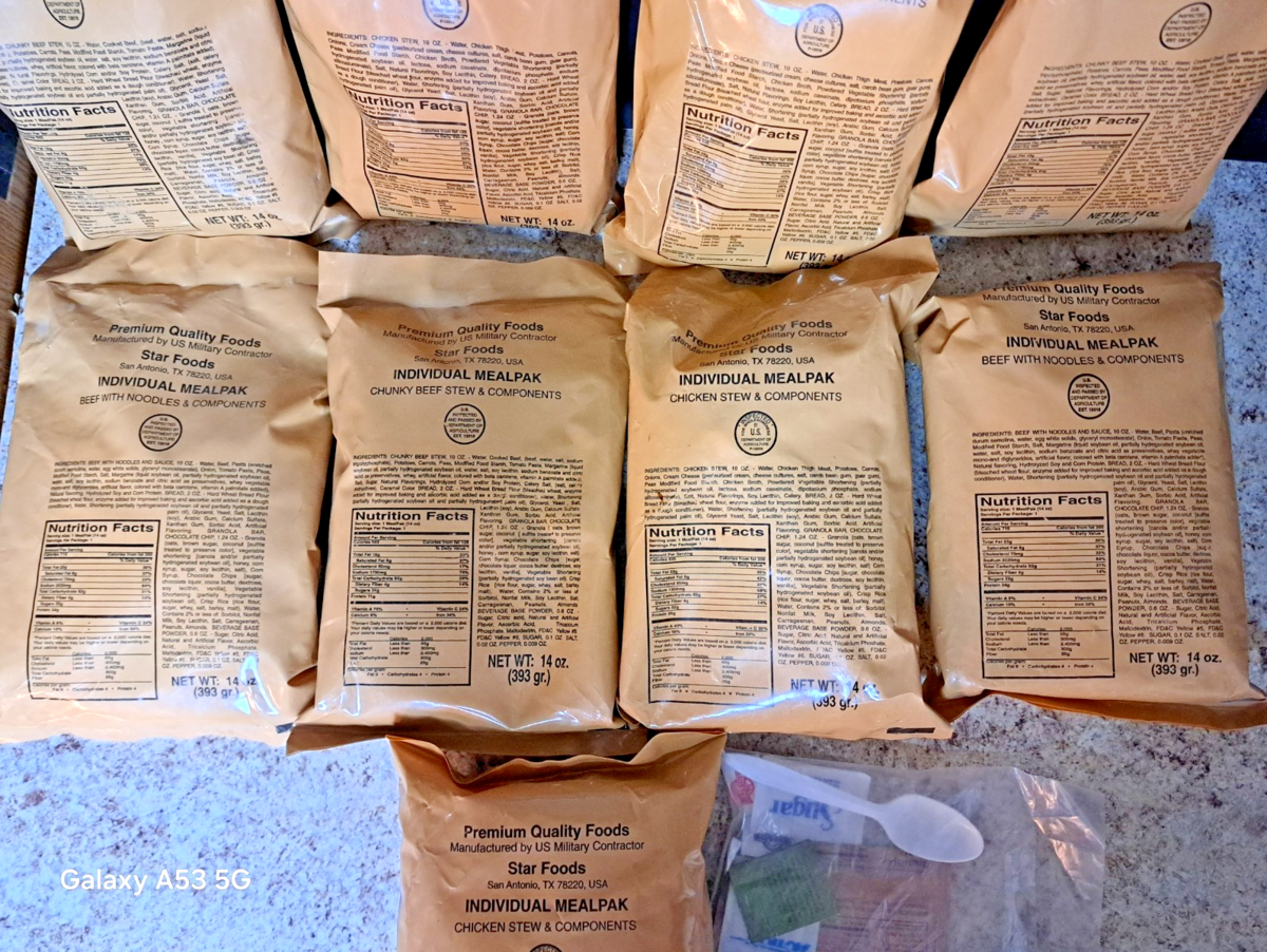 - 9 NEW OLD STOCK STAR FOODS MRE MEAL READY-TO-EAT SOLD FOR DISPLAY ONLY!