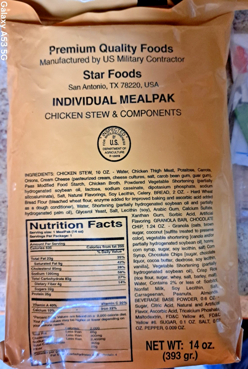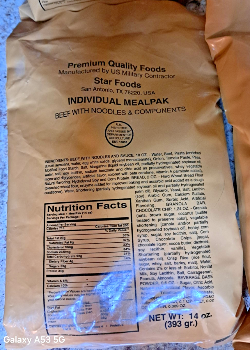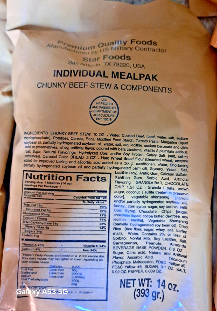 - 9 NEW OLD STOCK STAR FOODS MRE MEAL READY-TO-EAT SOLD FOR DISPLAY ONLY!