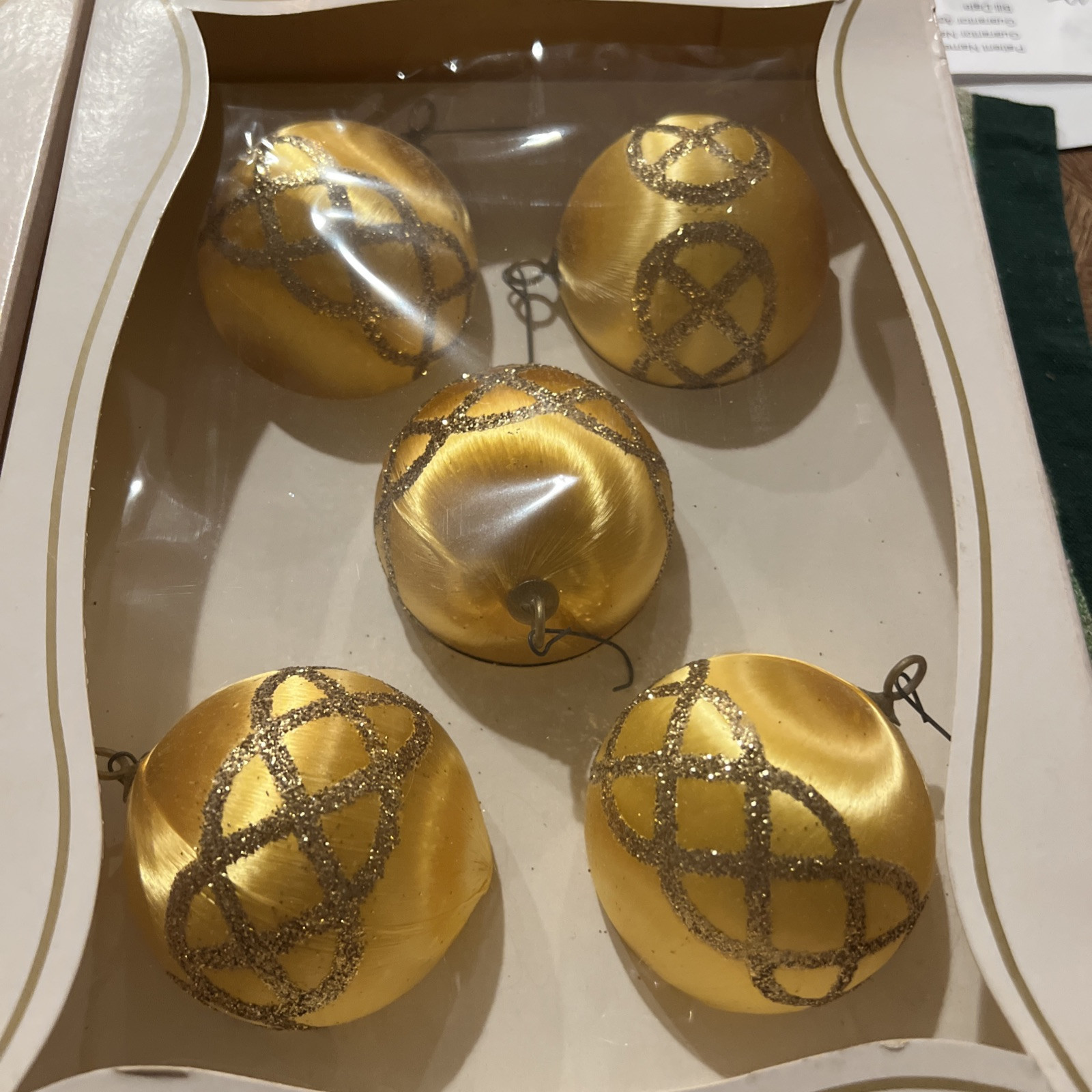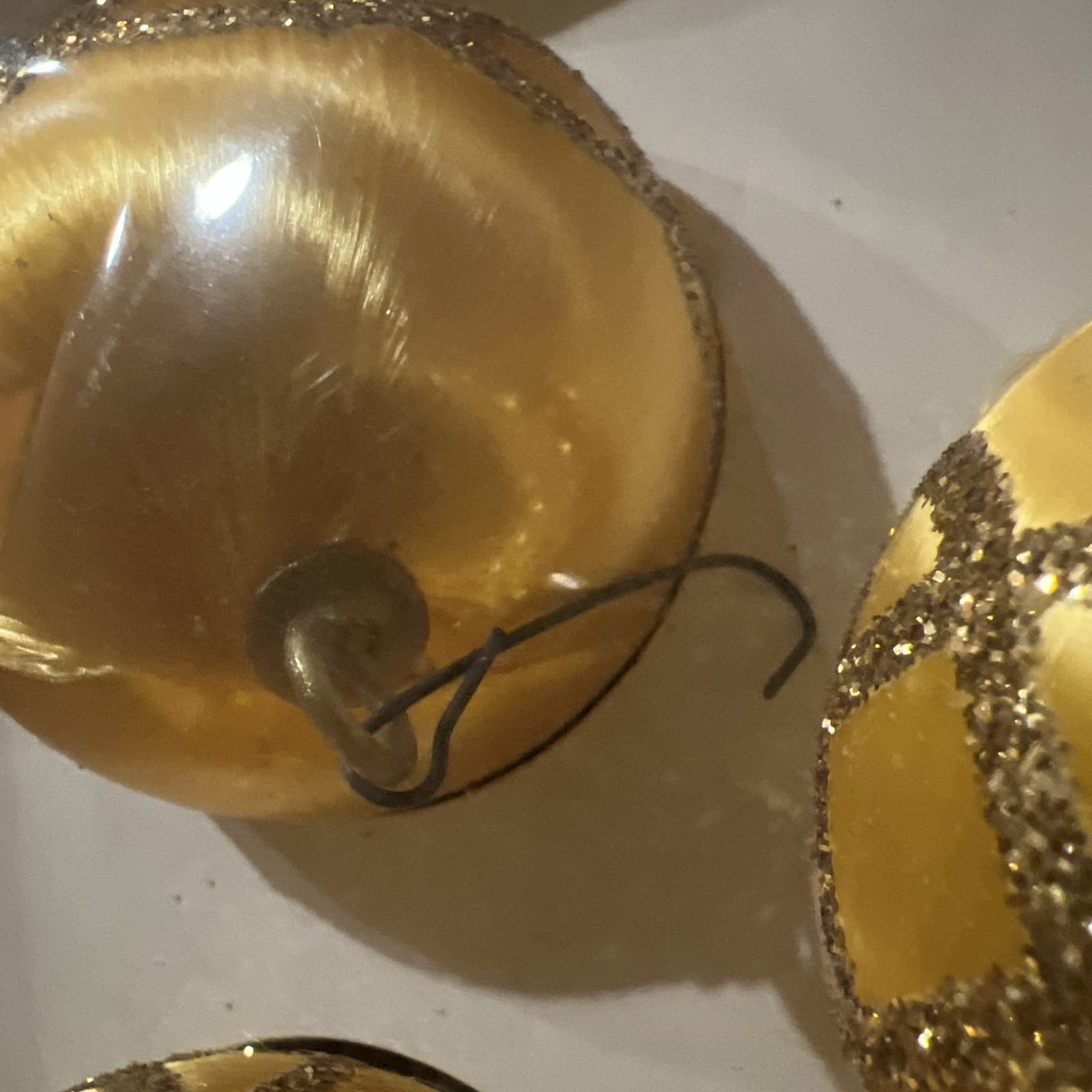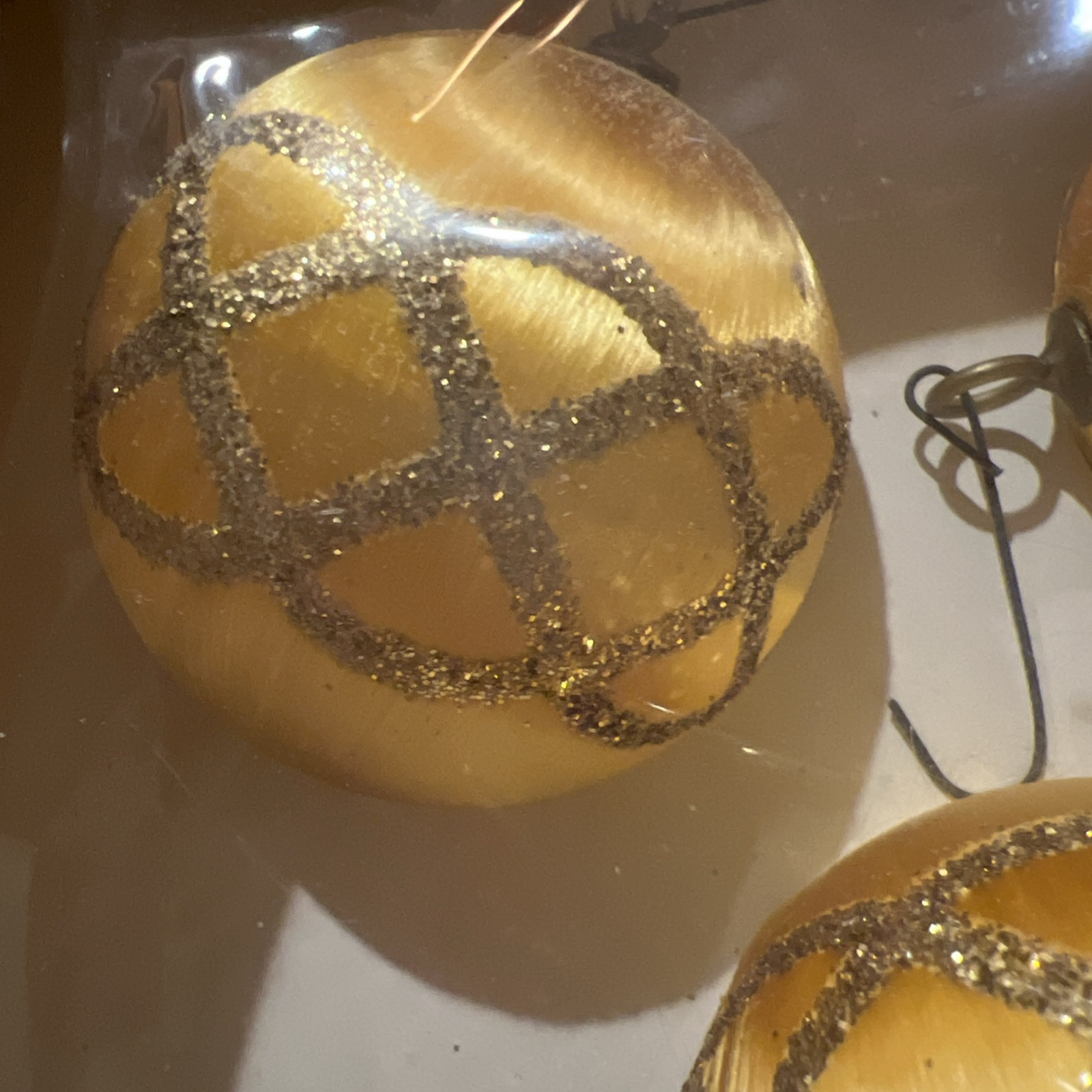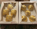 - 9 Pyramid Satin Sheen Christmas Ornaments Gold Glitter Drum Sphere Both