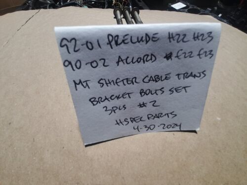 GOOD USED CONDITION. SHIFTER CABLE BRACKET TO TRANSMISSION BOLTS. FOR MANUAL TRANSMISSION. 90-02 ACCORD AND 92-01 PRELUDE. SHIPS USPS WITHIN A BUSINESS DAY OF PAYMENT.
