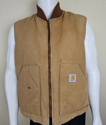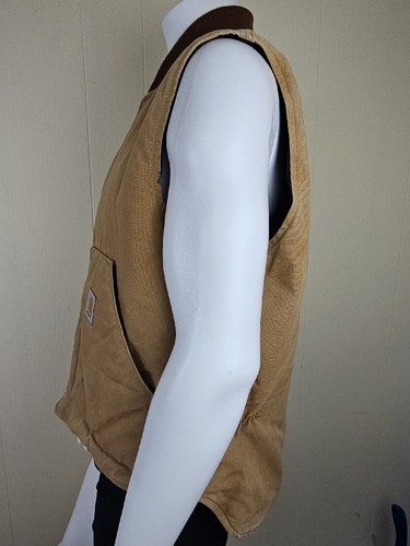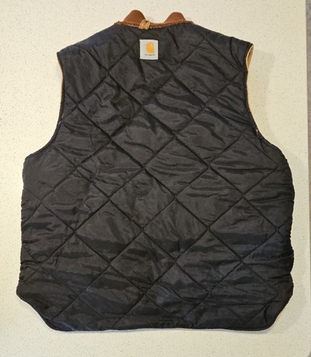 Vintage Carhartt Brown Vest Mens Sz XL Canvas Arctic Quilt Insulated Rib Knit Collar