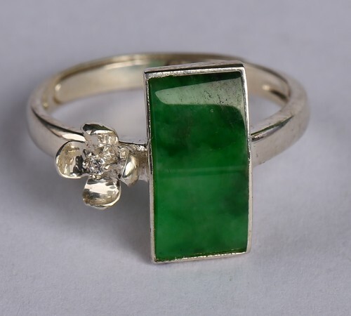 925 Silver Cert'd Untreated Natural Green Grade A Jadeite Ring Gift z8827