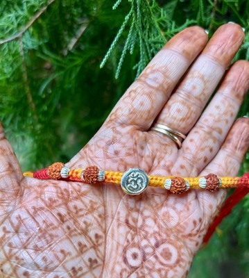 925 SILVER MAULI KALAWA RAKHI BRACELET 1 Pc Kalaya Hindu Charms- Rudraksha