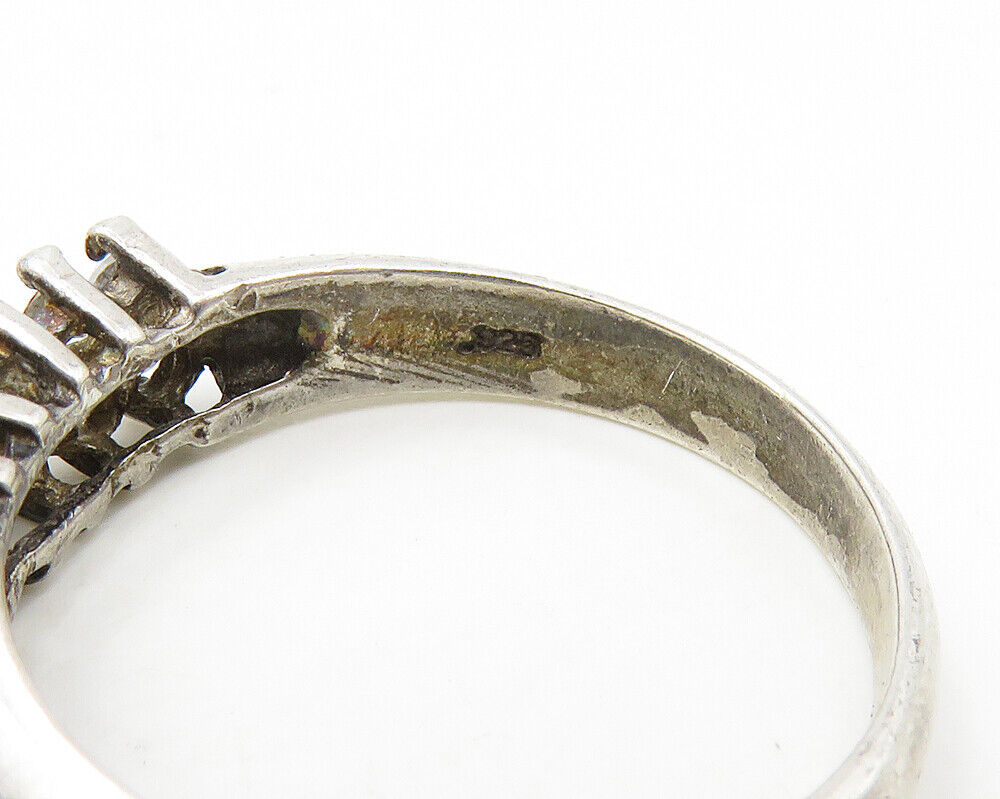 - 925 Silver - Vintage Cubic Zirconia Solitaire With Accents Ring Sz 10 - RG18834