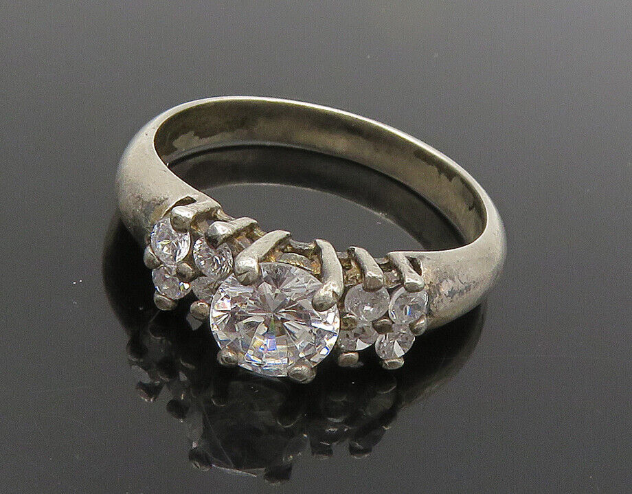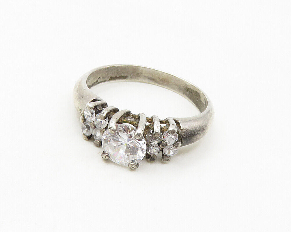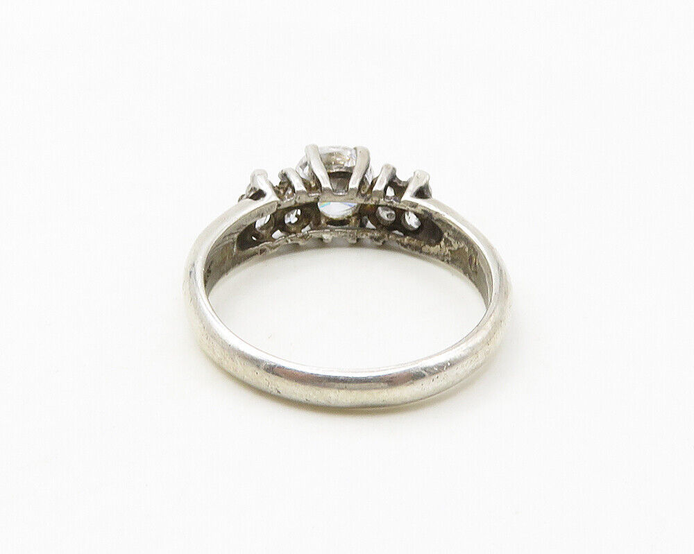 925 Silver - Vintage Cubic Zirconia Solitaire With Accents Ring Sz 10 - RG18834