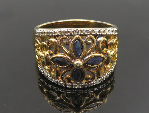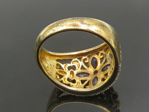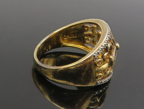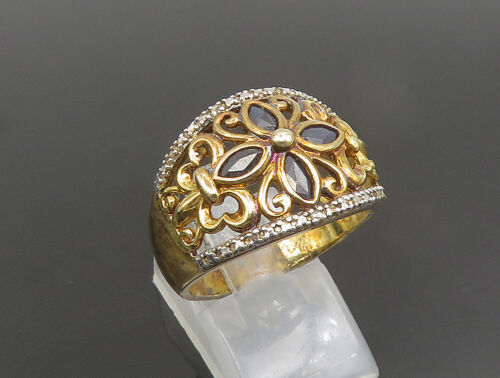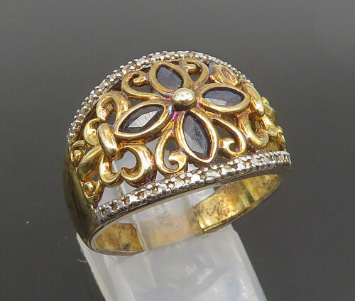 925 Silver - Vintage Two Tone Black Spinel Floral Scroll Ring Sz 10 - RG25176
