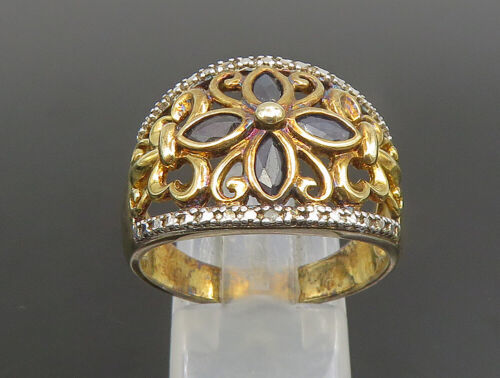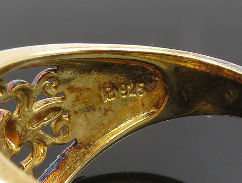 - 925 Silver - Vintage Two Tone Black Spinel Floral Scroll Ring Sz 10 - RG25176