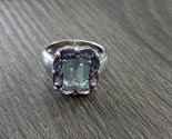925 Sterling Silver 2.5 Aquamarine W/ Amethyst Stone Ring Size 7 Free Shipping