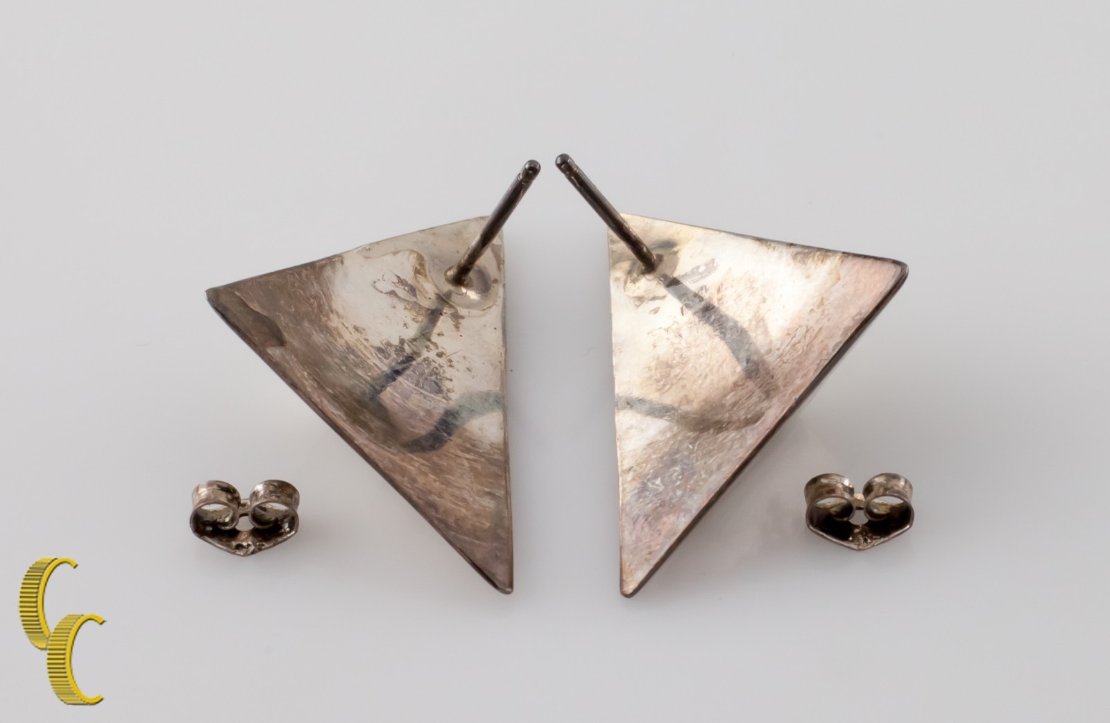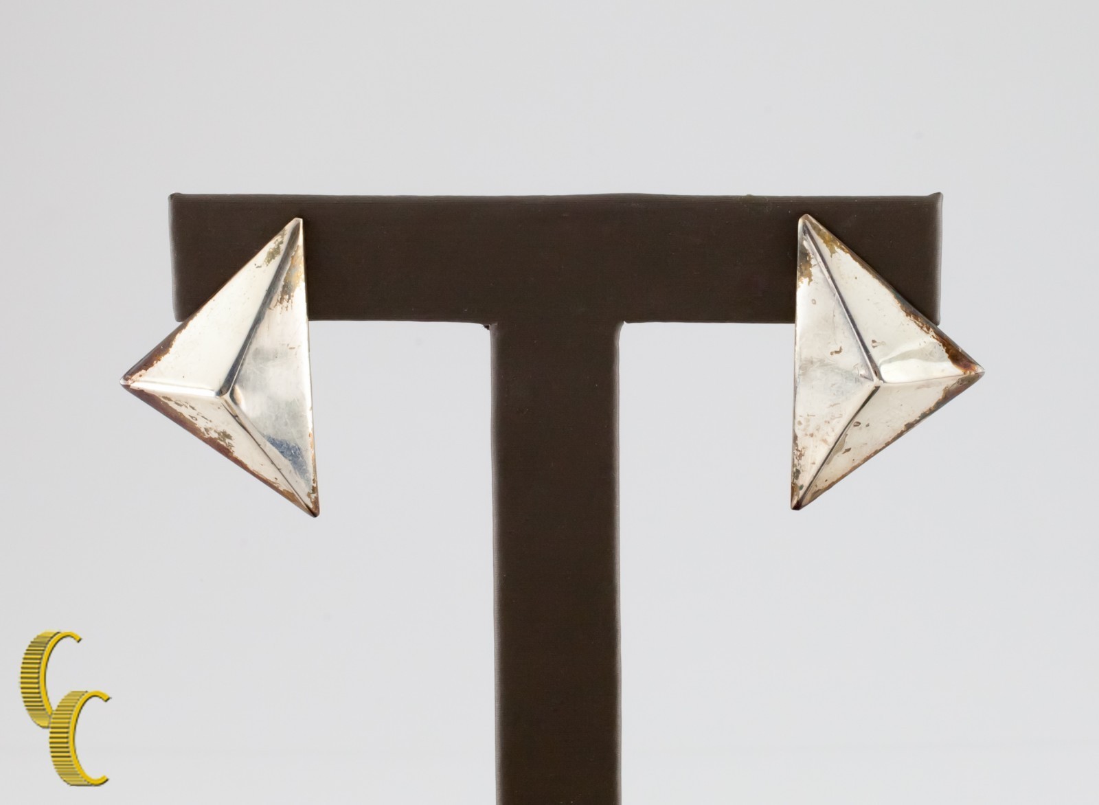 .925 Sterling Silver 3D Geometric Triangle Earrings