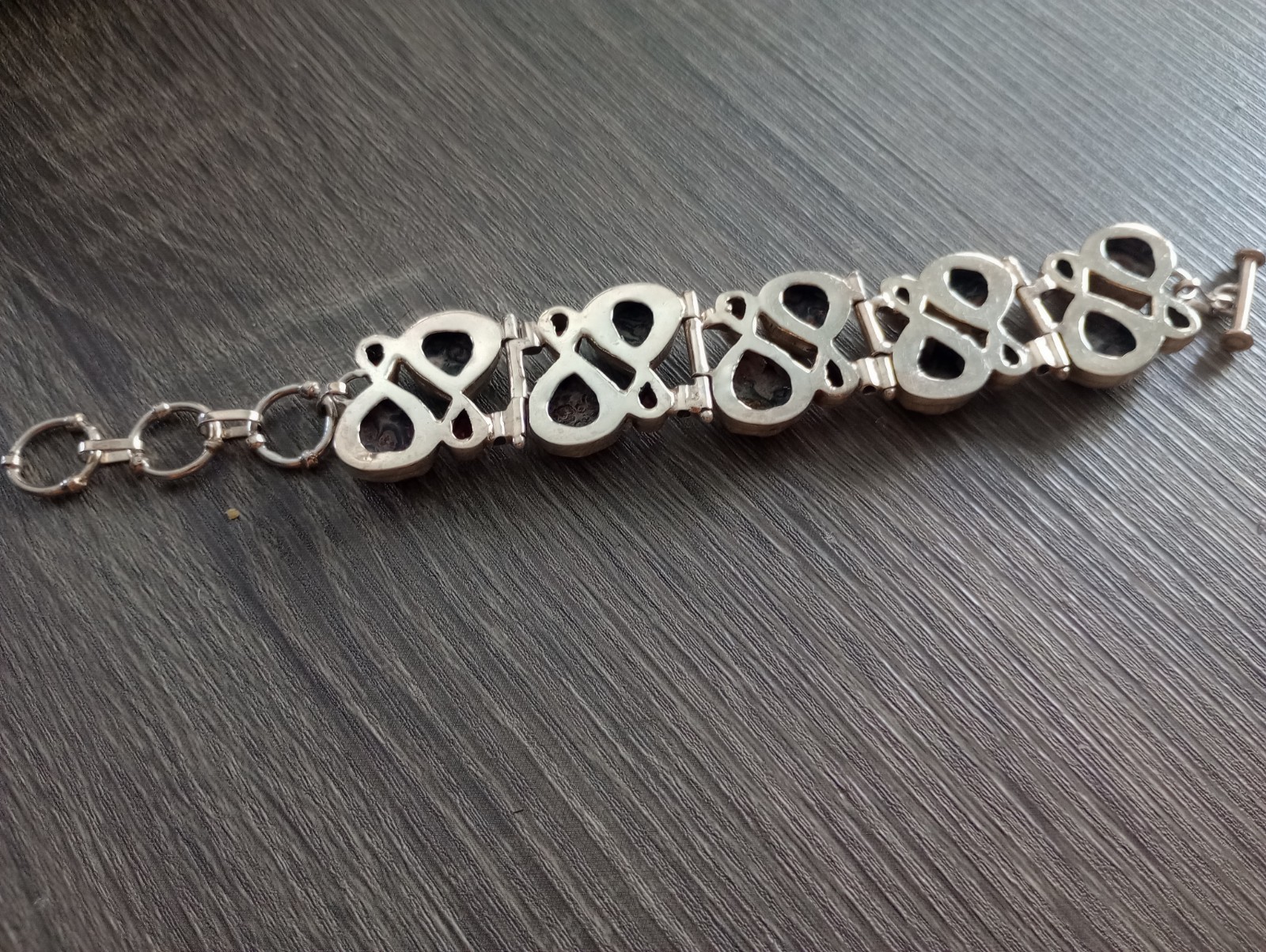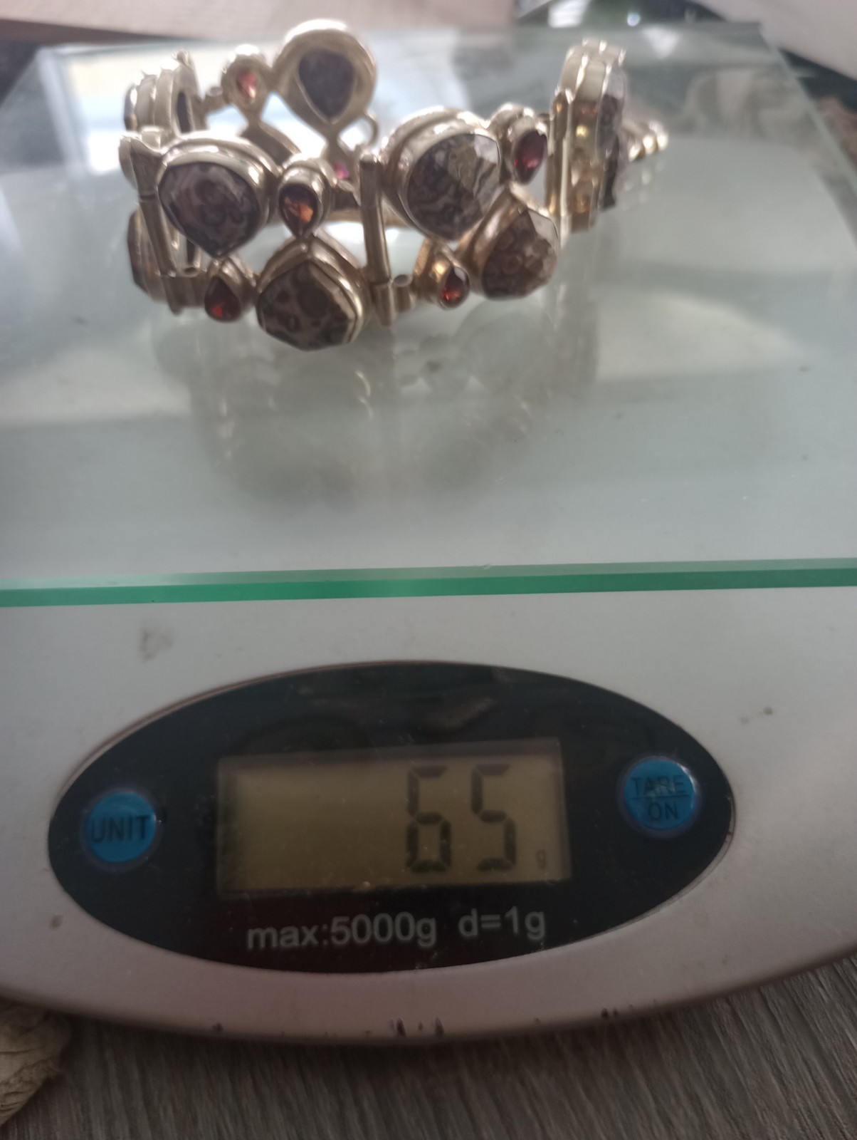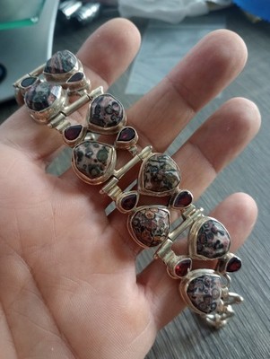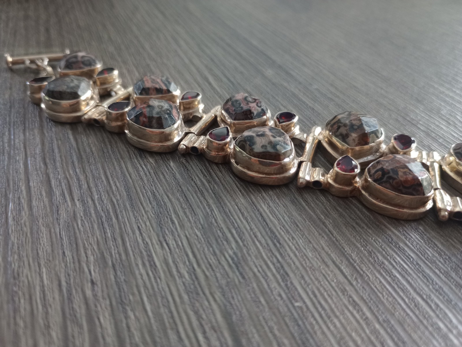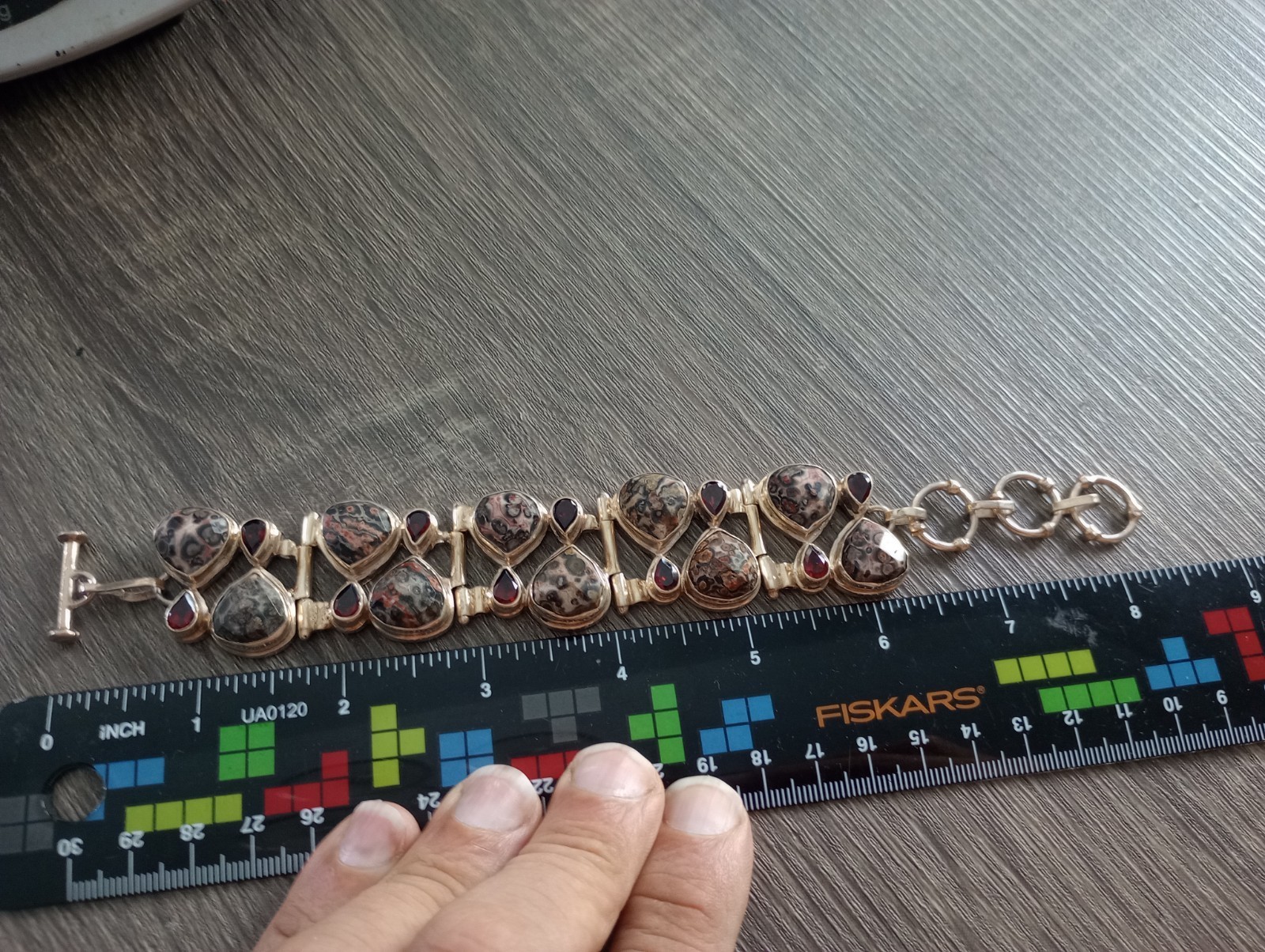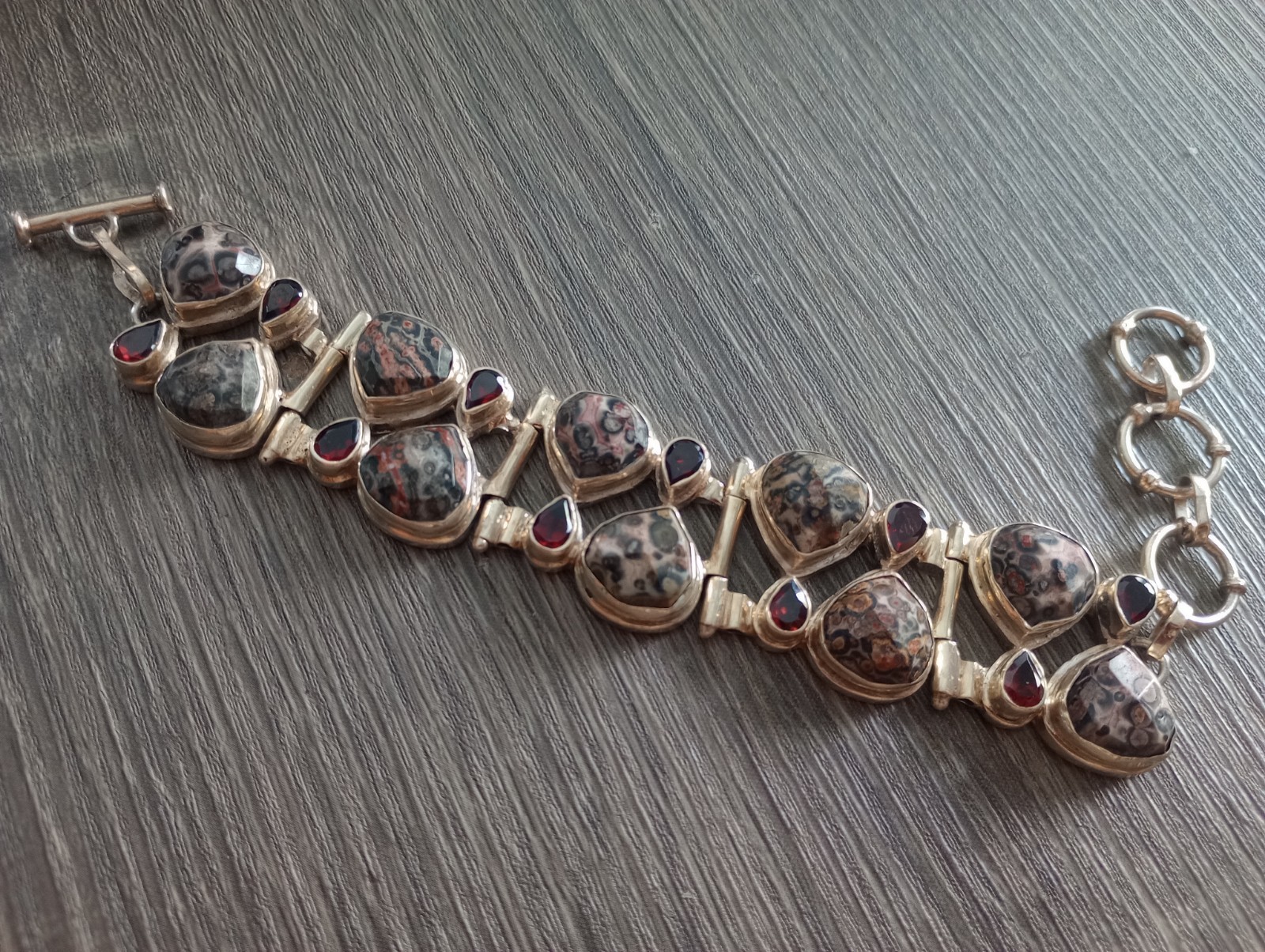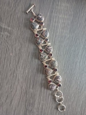 - 925 Sterling Silver Agate And Garnet Stone 8.5" Adjustable Toggle Link Bracelet