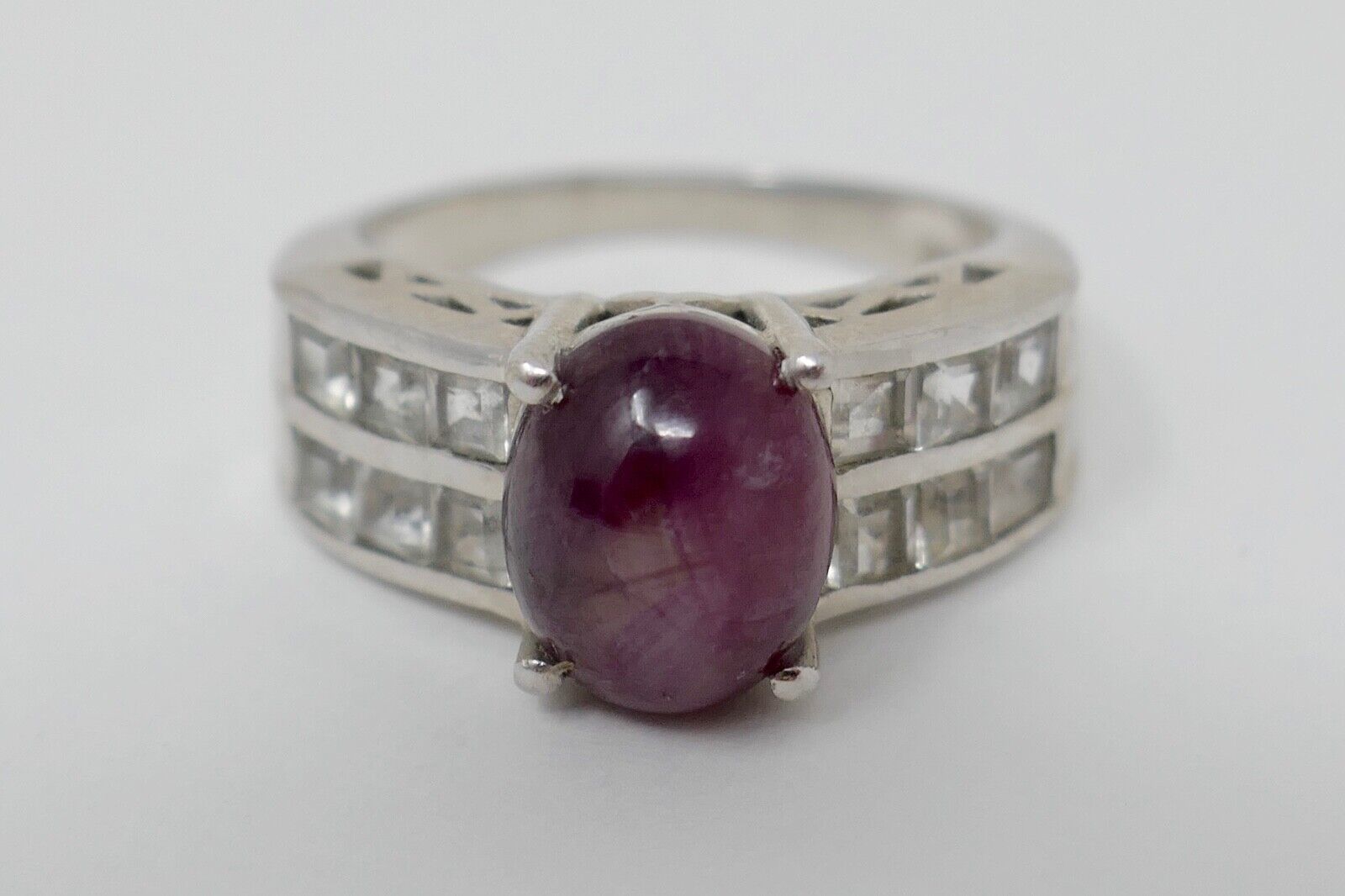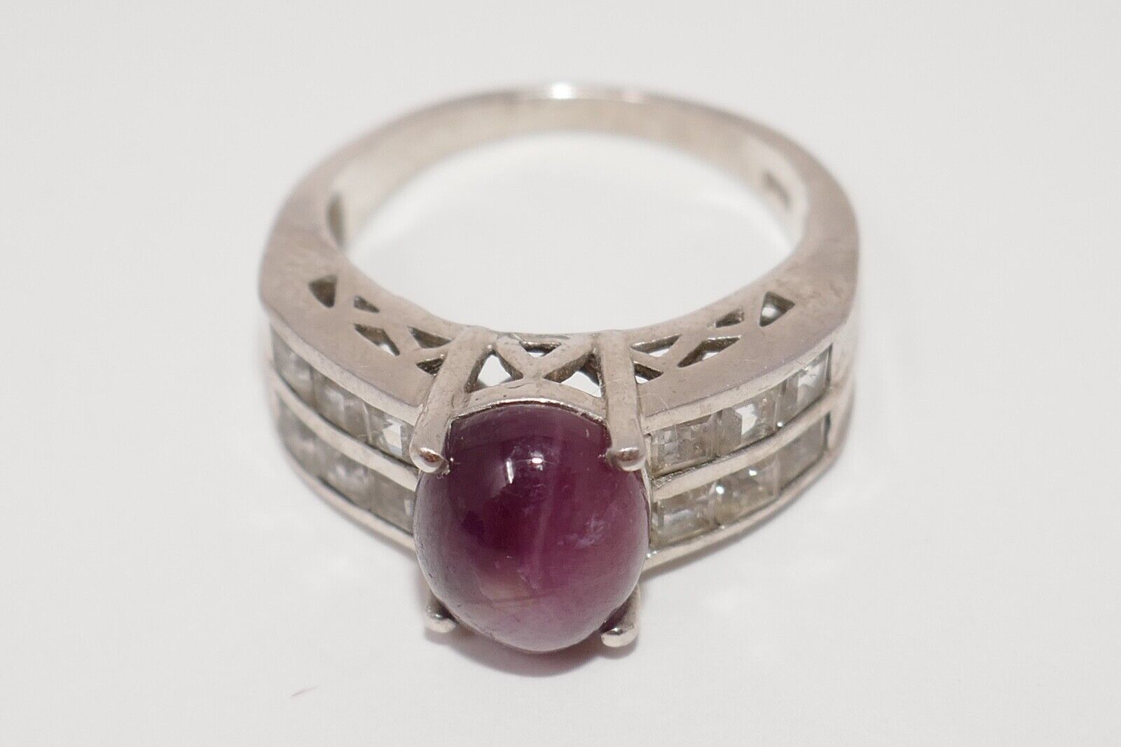 925 Sterling Silver Agate & Cubic Zirconia Ring Size 7