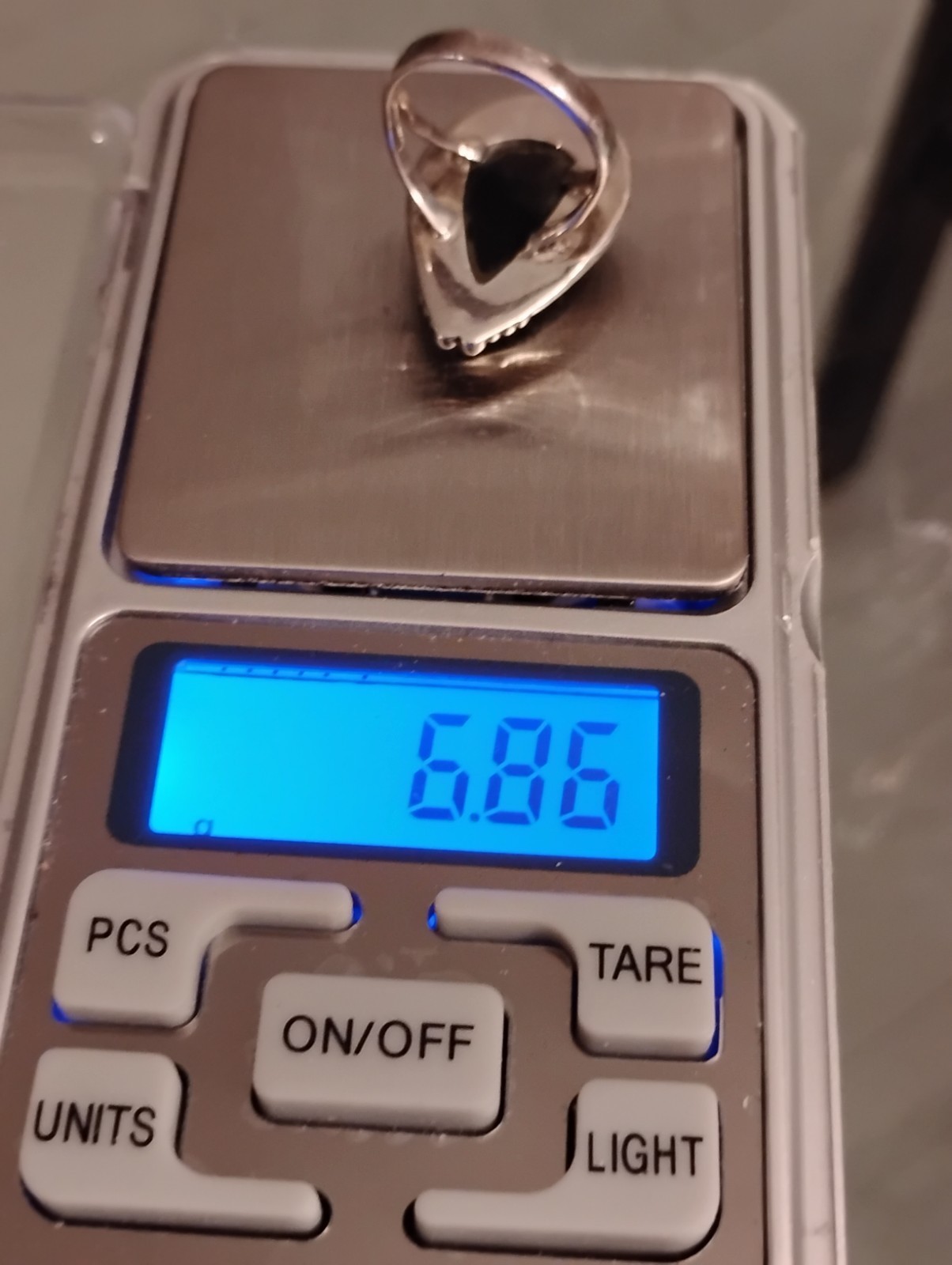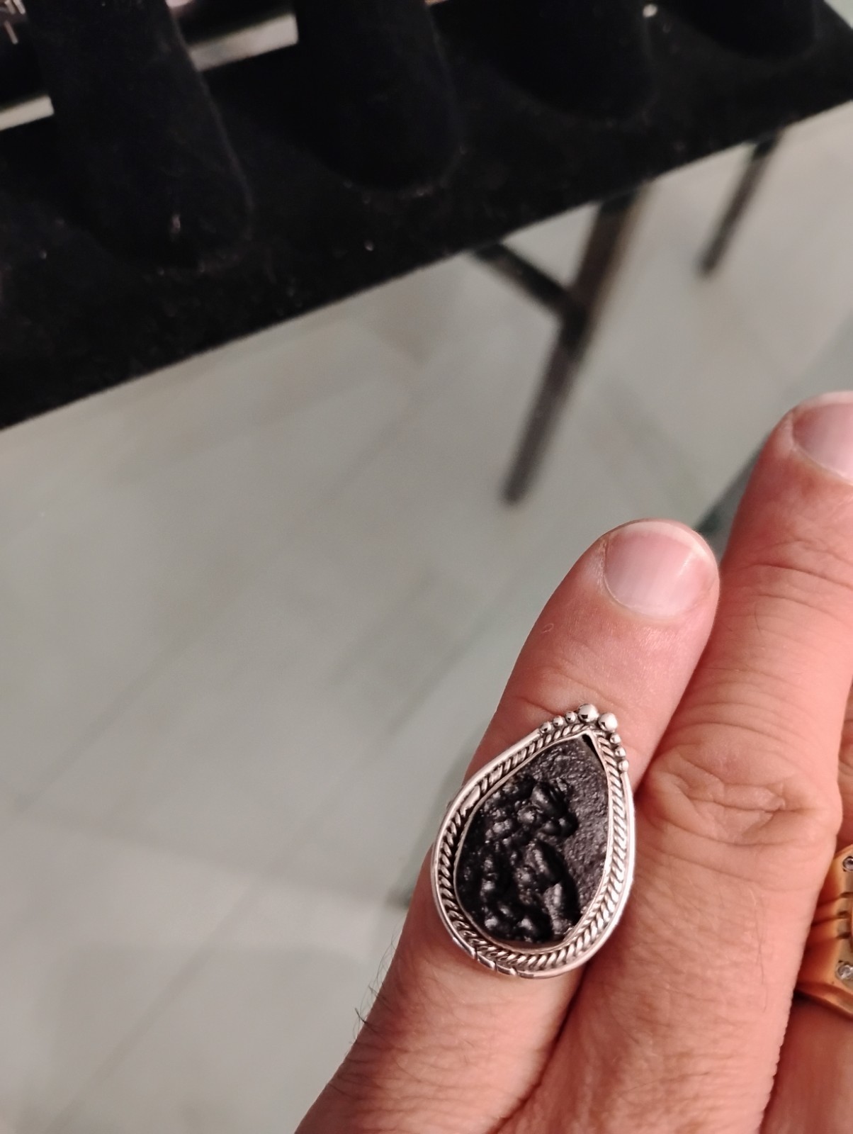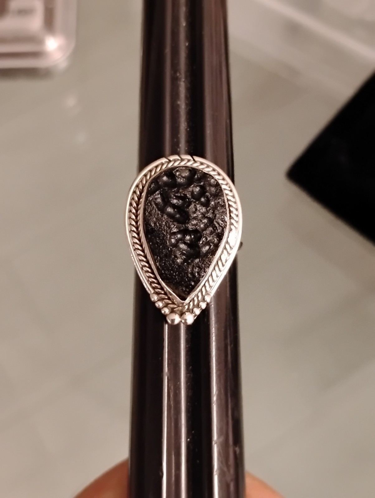 925 Sterling Silver Black Obsidian Volcanic Glass Ring Size 7 Free Shipping