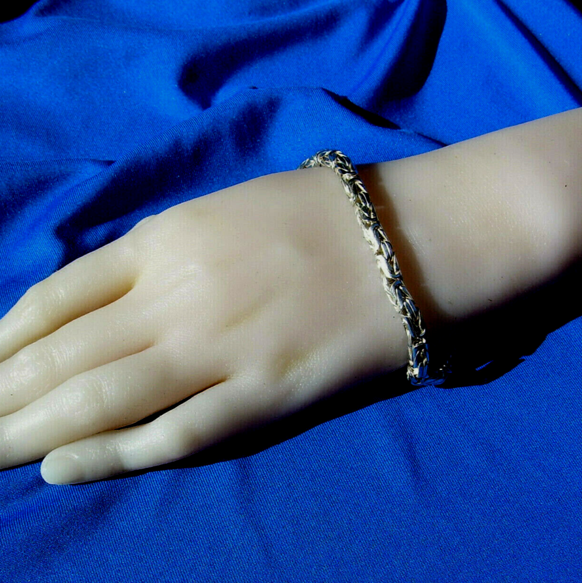 - 925 Sterling Silver Byzantine Bracelet Woven Braided Vintage Style Chain Gift