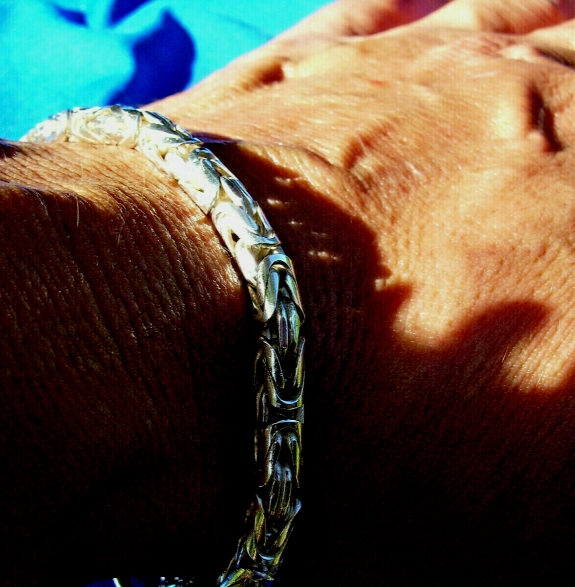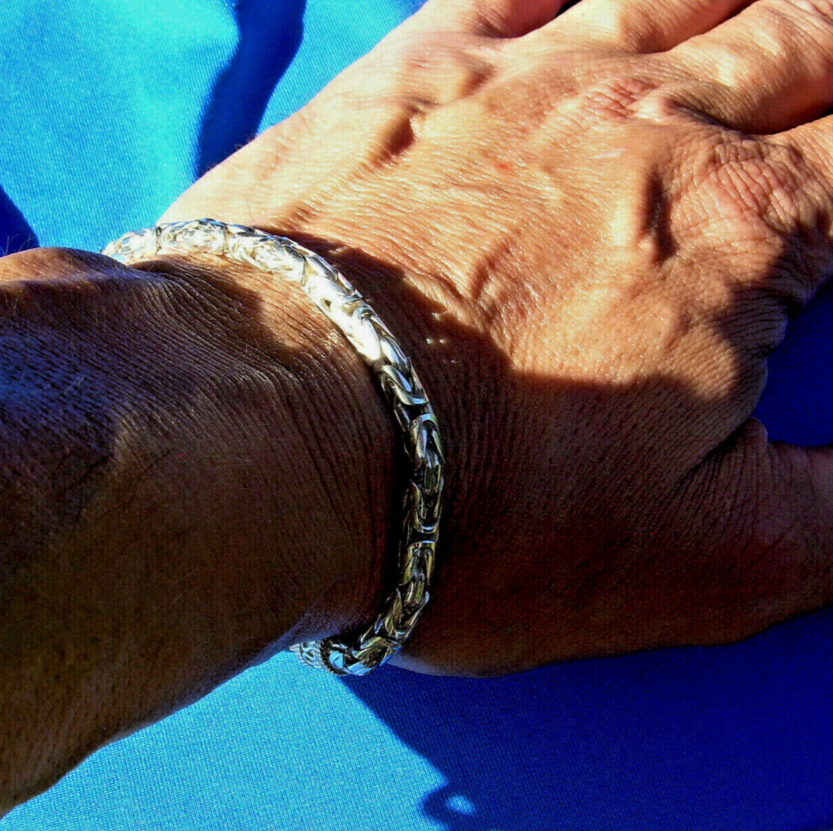 STERLING SILVER WOVEN HAND MADE CHAIN BRACELET.