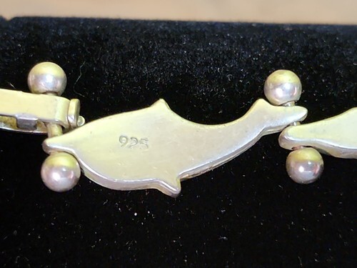 925 Sterling Silver Dolphin Motif Fetish Link Chain Bracelet Vintage 7.5" 21.27g