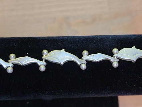 925 Sterling Silver Dolphin Link Chain Bracelet Vintage 7.5" 21.27 g