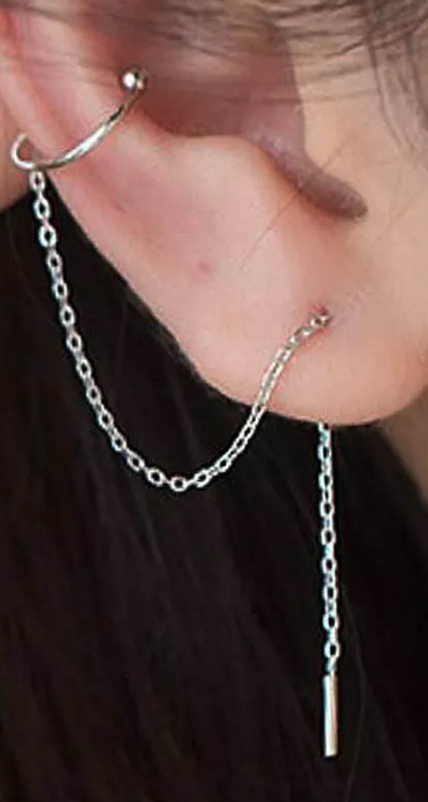 925 Sterling Silver Ear Cuff Thread Threader Line Dangle Earring