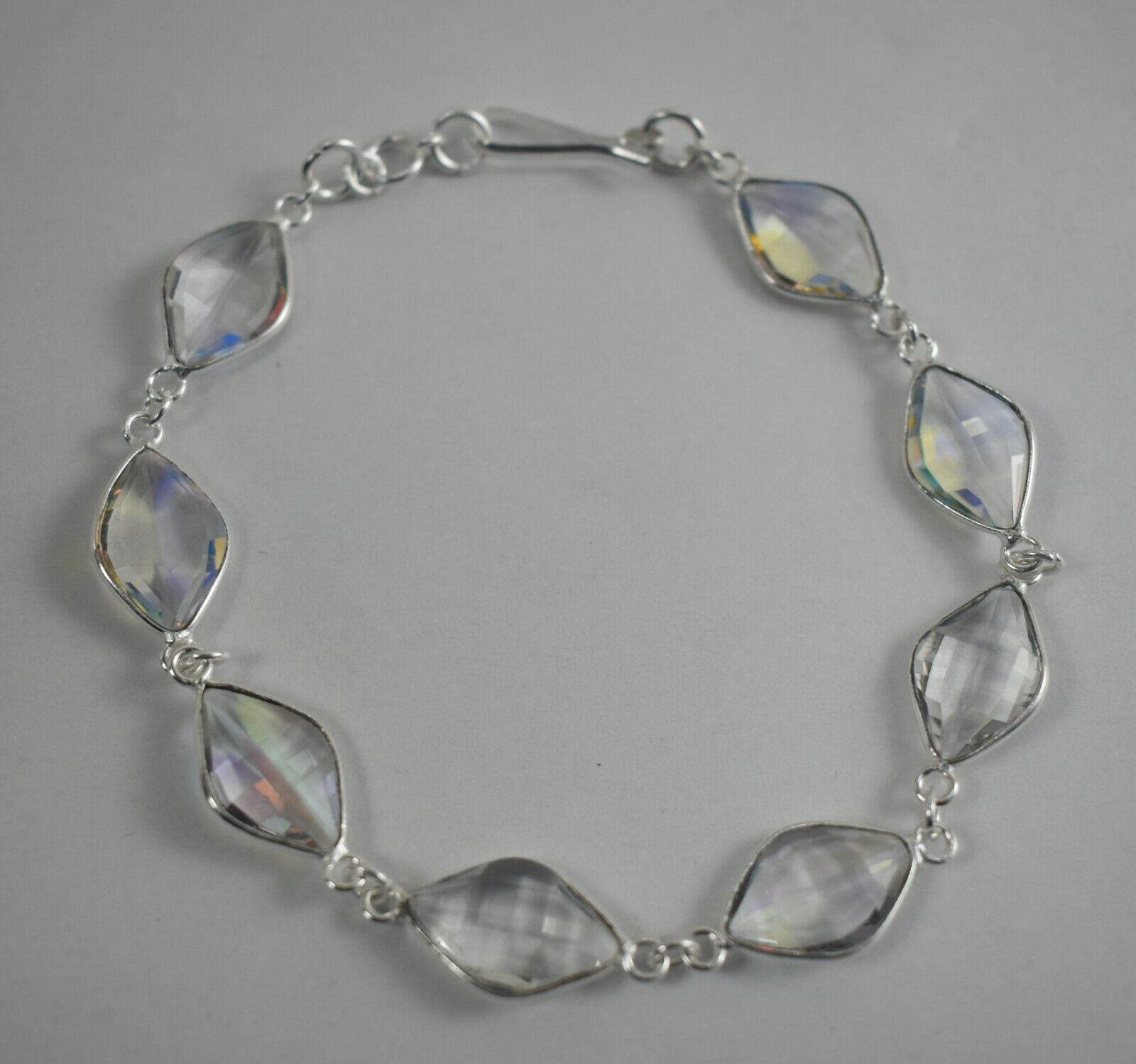 925 Sterling Silver Handmade White Topaz Gemstone Bracelet Women Gift BS-1096