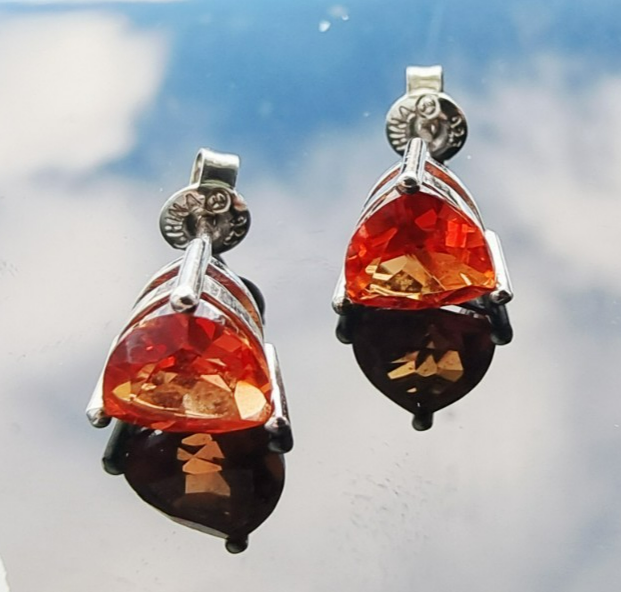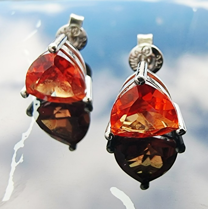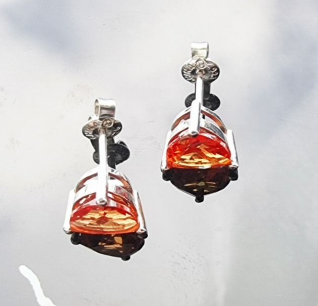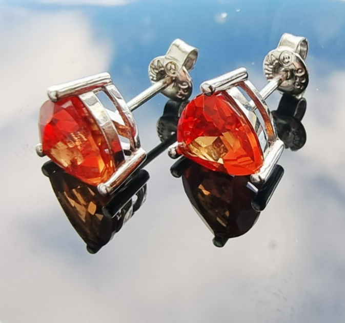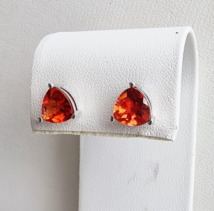 925 STERLING SILVER LAB GROWN 8x8 mmTRILLION SHAPE ORANGE SAPPHIRE STUD EARRINGS