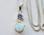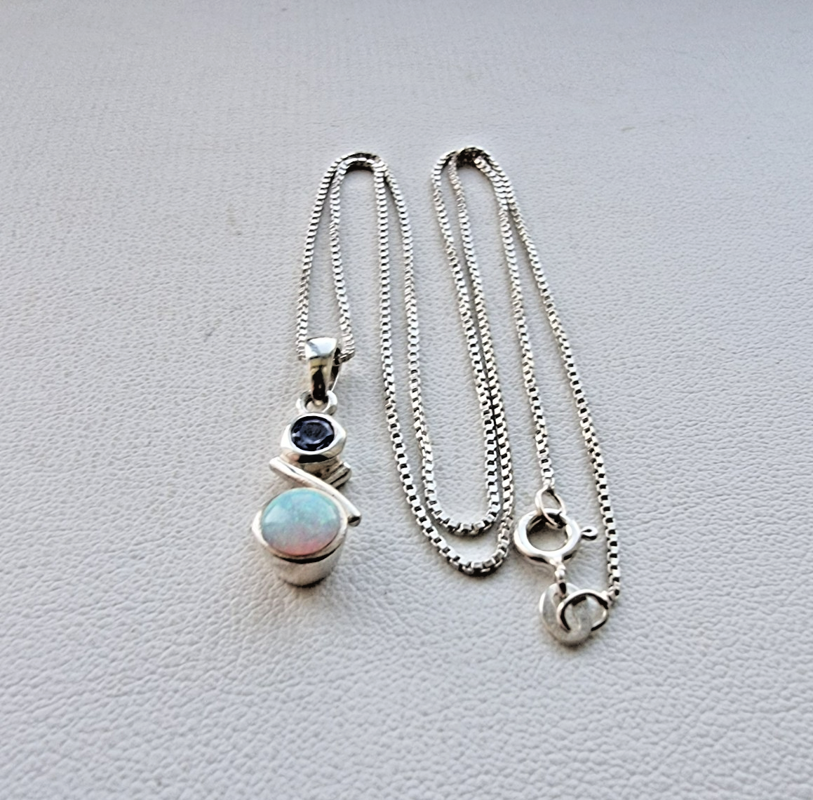 - 925 STERLING SILVER LONDON BLUE TOPAZ AND OPAL PENDANT NECKLACE