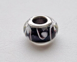 - 925 STERLING SILVER RETRO SLIDE CHARM MURANO GLASS BUBBLE BEAD BLACK SWIRLS