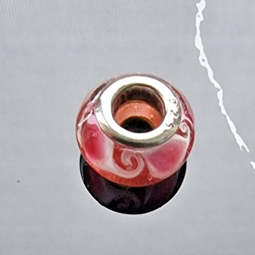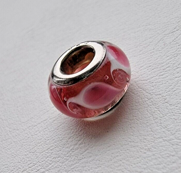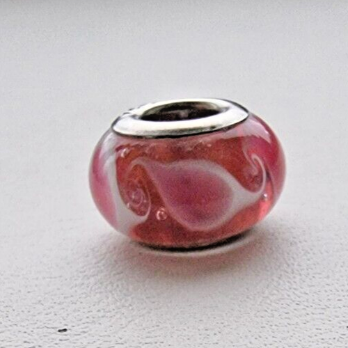 - 925 STERLING SILVER RETRO SLIDE CHARM MURANO GLASS BUBBLE BEAD PINK SWIRLS