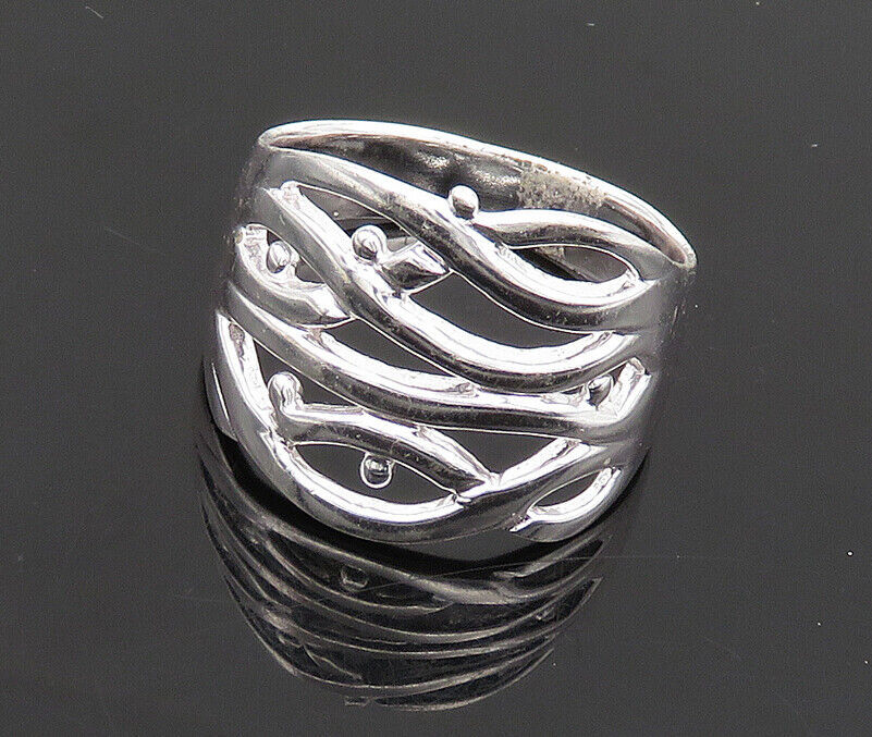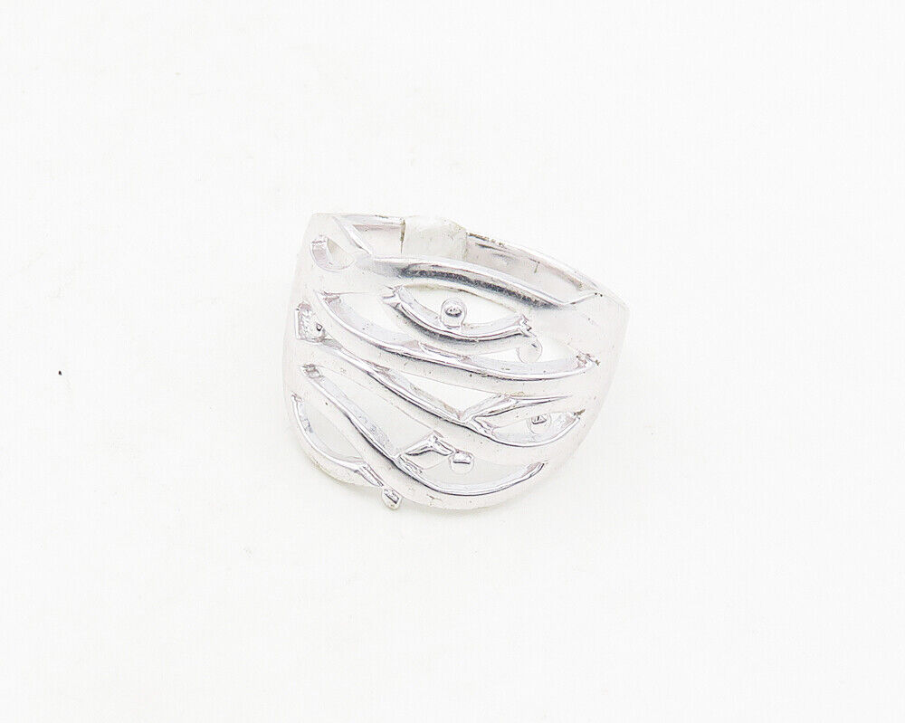 925 Sterling Silver - Shiny Polished Floral Vine Motif Band Ring Sz 10 - RG18620