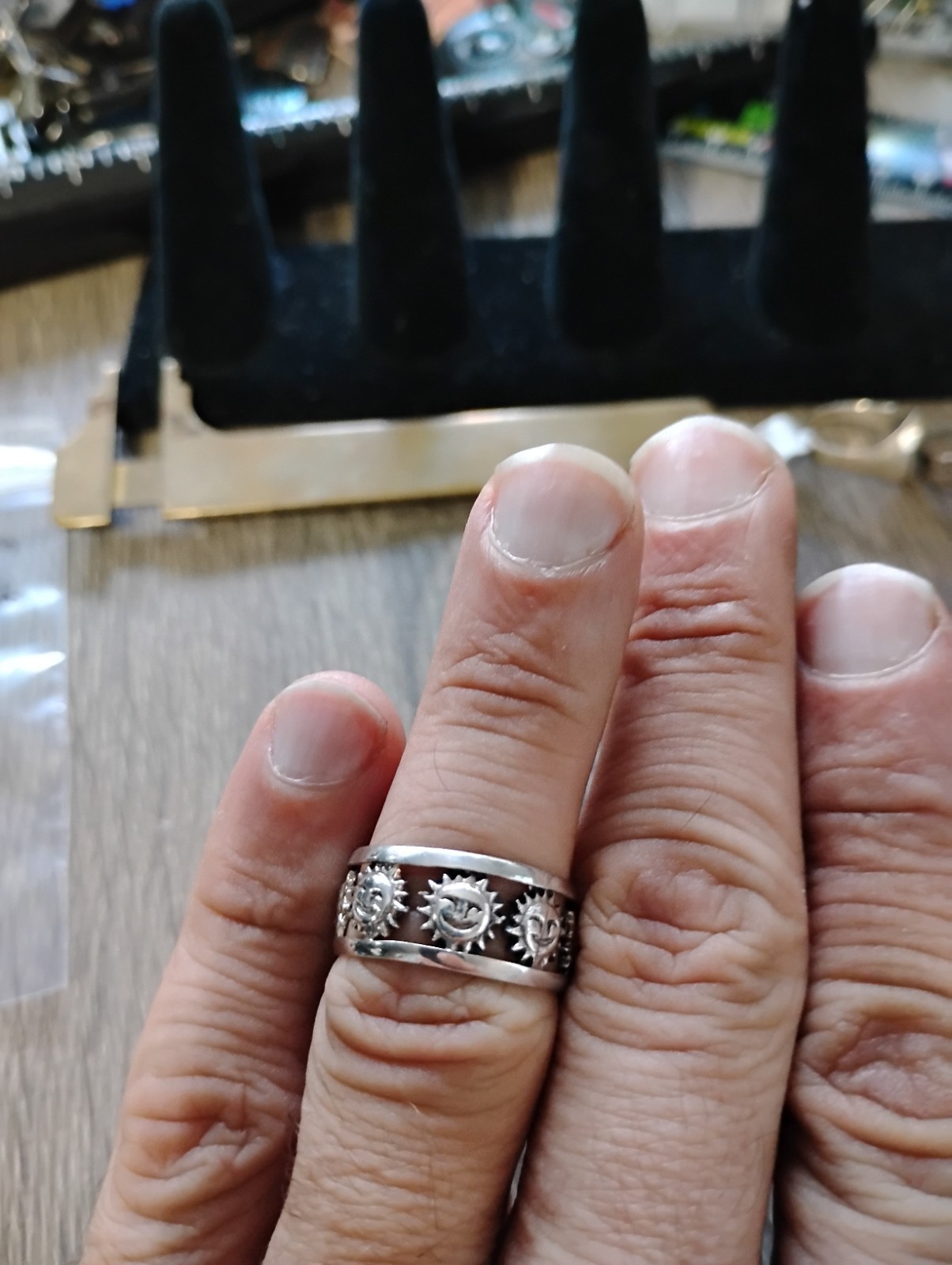 - 925 Sterling Silver Smiling Sun Band Ring 10 Mm Wide Sz 9 Free Shipping