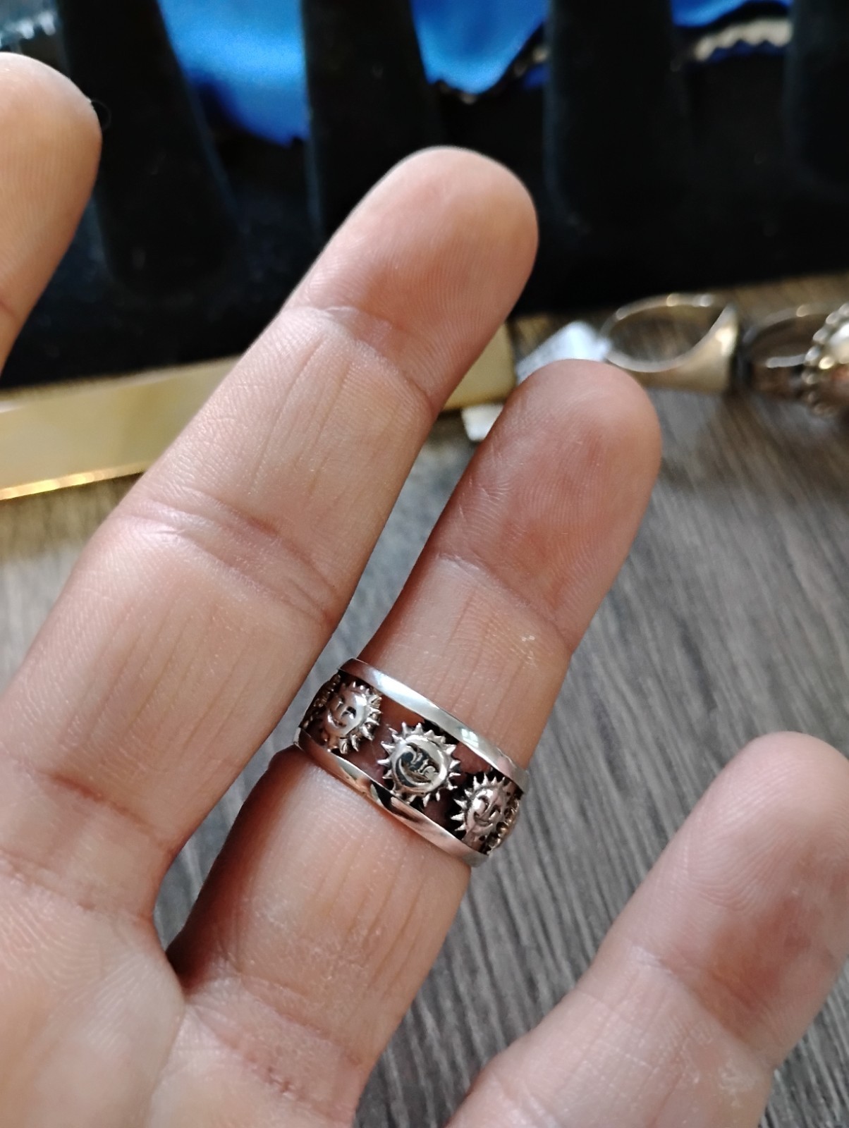 925 Sterling Silver Smiling Sun Band Ring 10 Mm Wide Sz9 Free Shipping