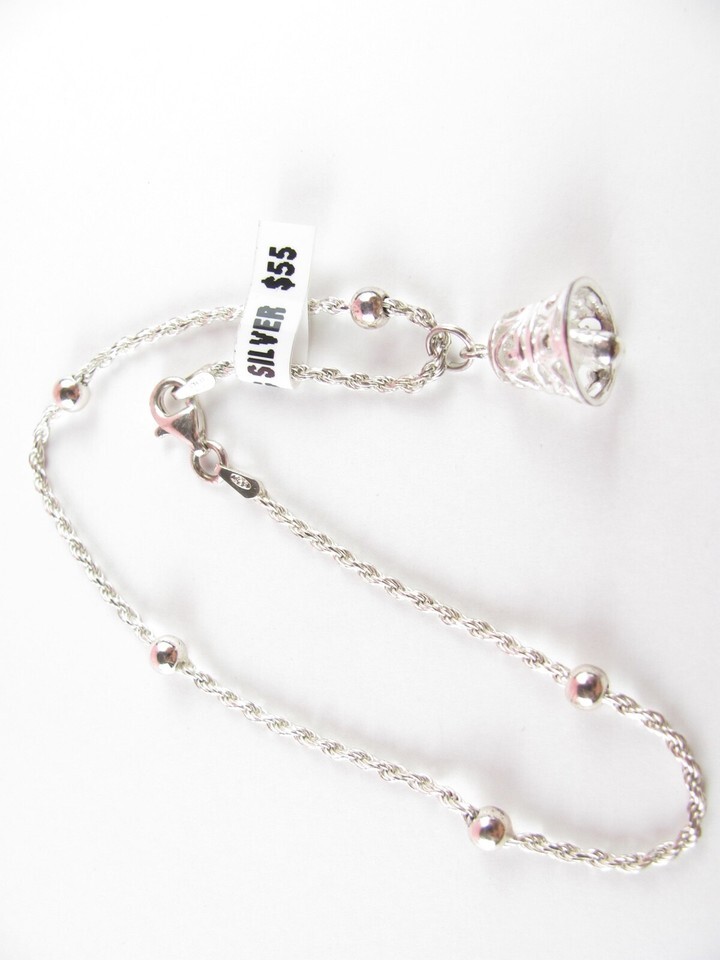 - 925 STERLING SILVER stamped BRACELET WITH BELL PENDANT 9inch long - BEST PRICE