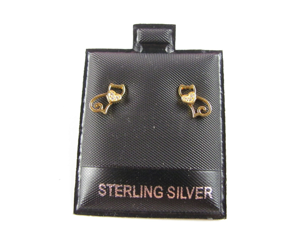 925 STERLING SILVER stamped EARRINGS CAT - with glitter stone gold colored