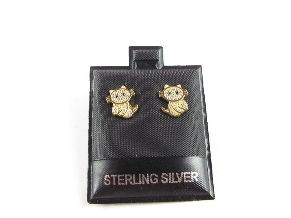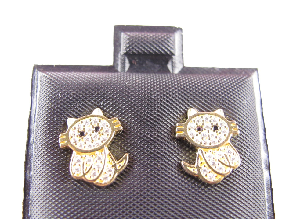 925 STERLING SILVER stamped EARRINGS CAT - with glitter stone gold colored
