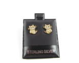 - 925 STERLING SILVER stamped EARRINGS CAT - with glitter stone gold colored