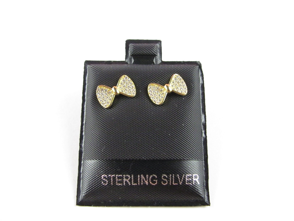 925 STERLING SILVER stamped EARRINGS RIBBON - with glitter stone gold colored