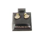 925 STERLING SILVER stamped EARRINGS SWAN - gold colored with glitter stone