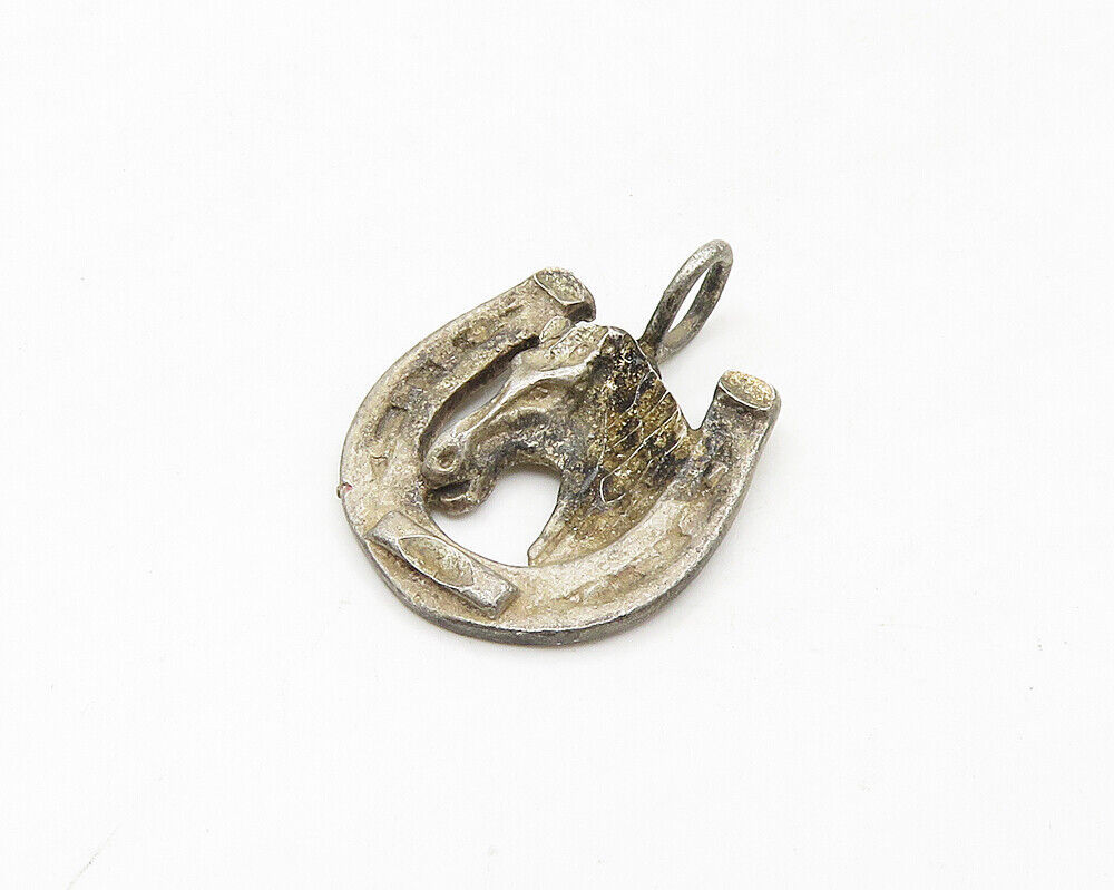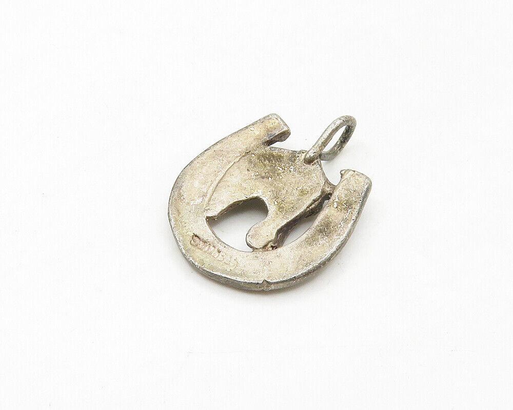 - 925 Sterling Silver - Vintage Dark Tone Horse's Head & Shoe Pendant - PT14249