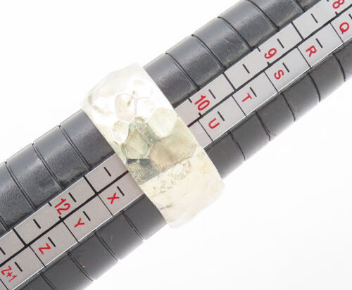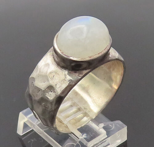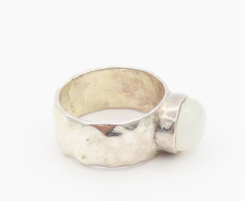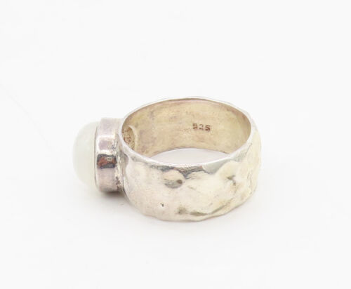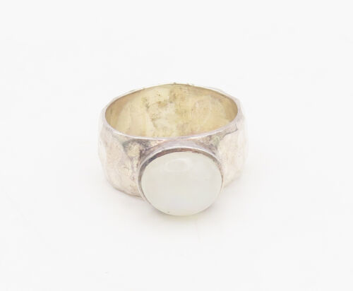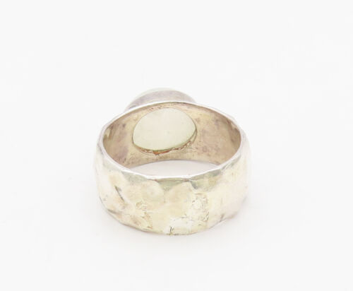- 925 Sterling Silver Vintage Ring Hammered Band Oval Cabochon Opal Sz 11 RG27670