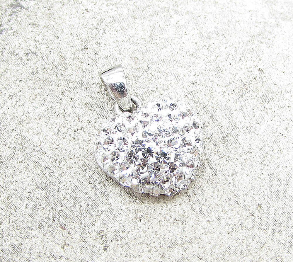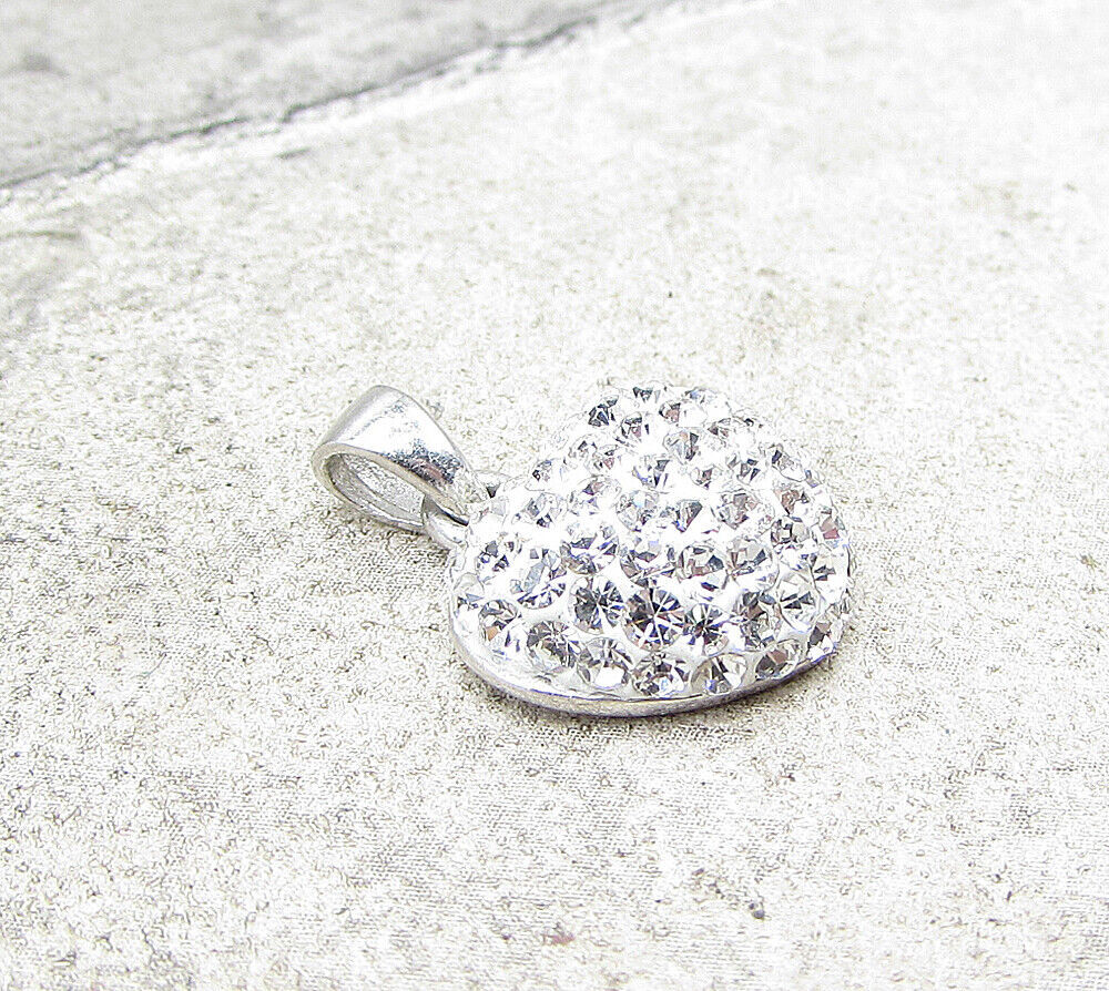 925 Sterling Silver - White Crystals Love Heart Drop Pendant - PT1431