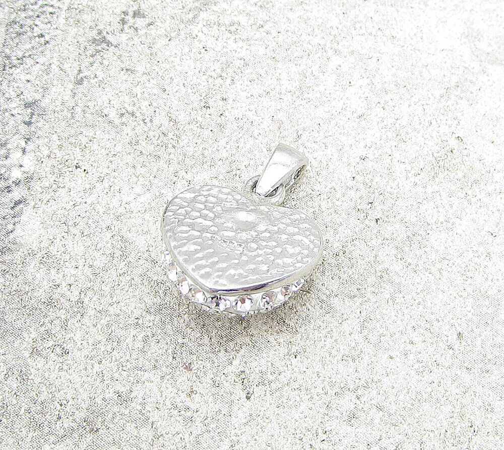 - 925 Sterling Silver - White Crystals Love Heart Drop Pendant - PT1431