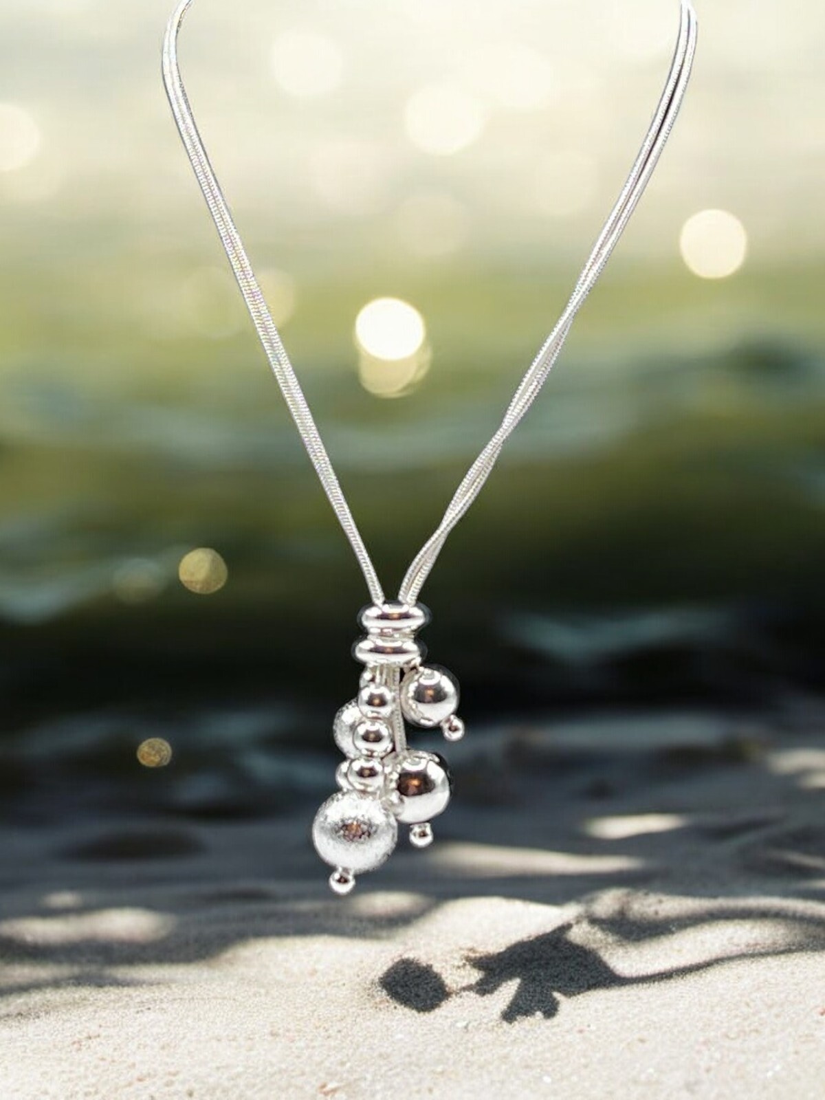 - 925 Sterling Silver Y-Drop Beaded Necklace Elegant Gift 18in New Jewelry (Oher)
