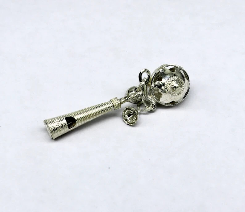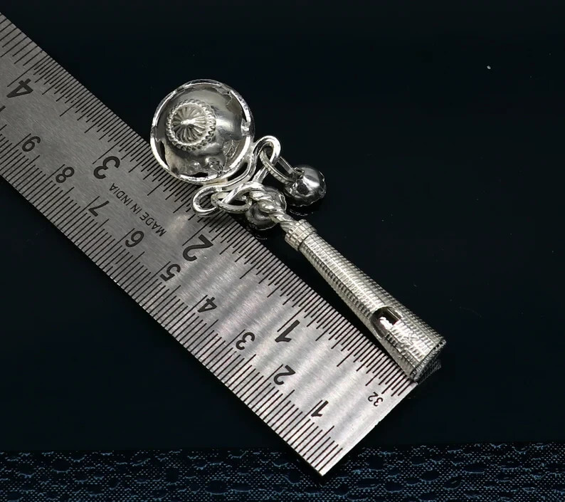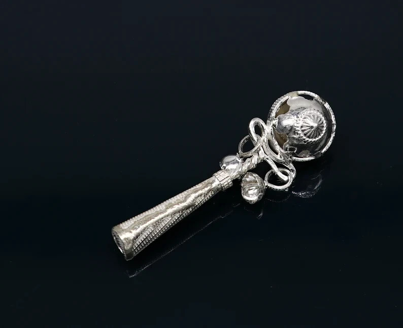 - 925 sterling silver bells toy, baby krishna whistle, silver temple article su338